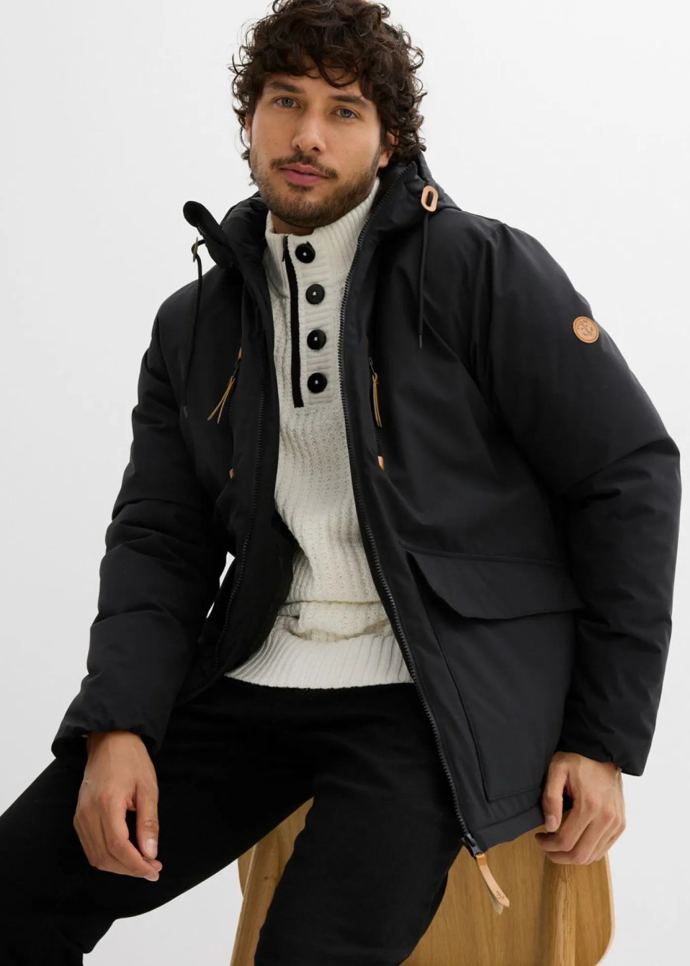Cálida chaqueta acolchada con aplicaciones de piel sintética.