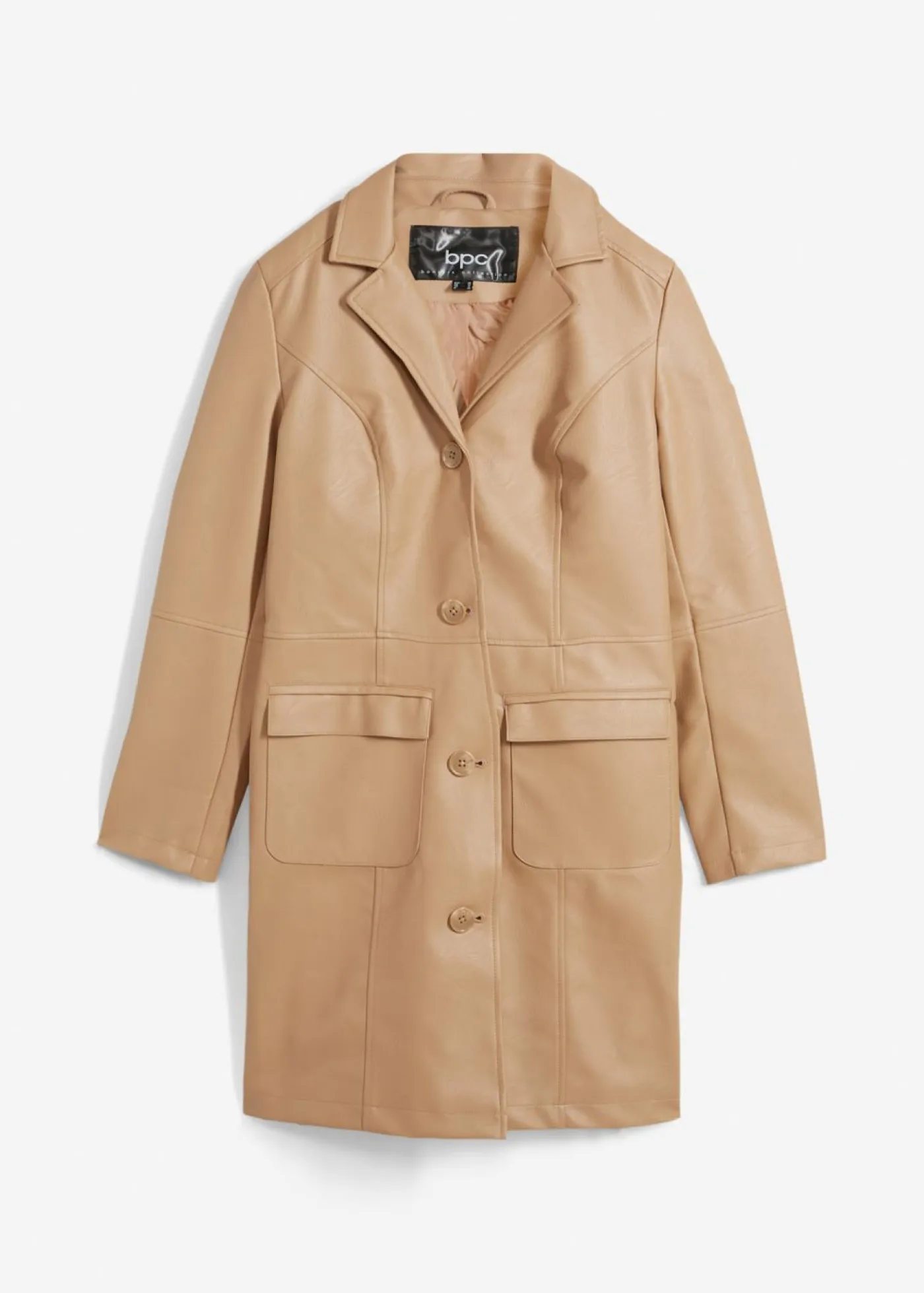 Abrigo moderno de piel sintética. Largo de aprox. 90 cm en todas las tallas. Se puede lavar a máquina.