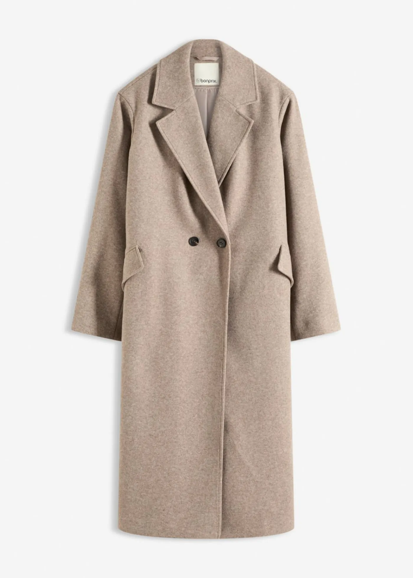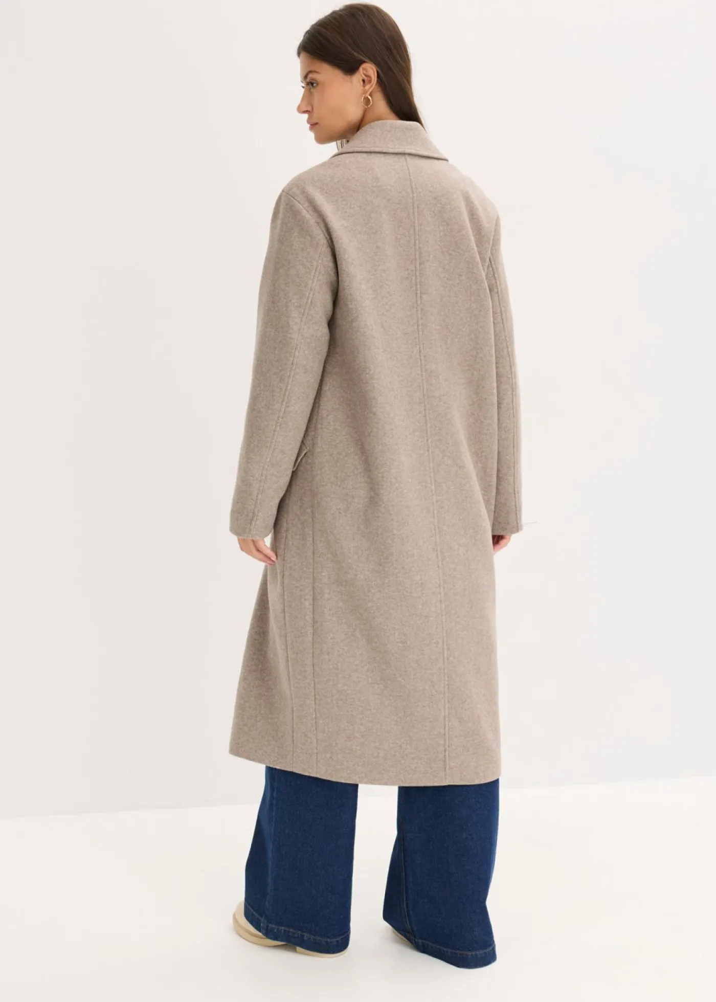 Abrigo con aspecto de lana con solapa ancha.