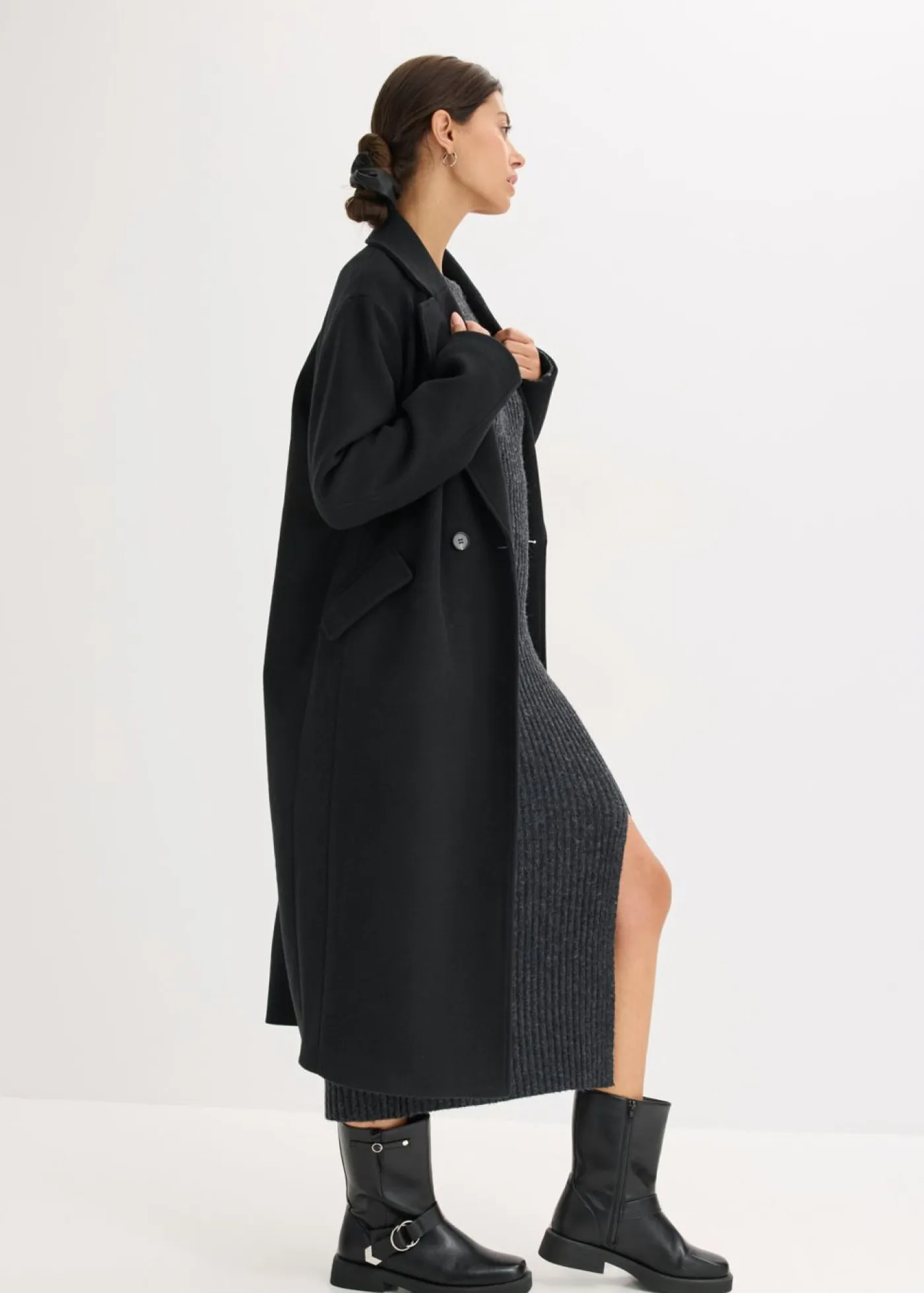 Abrigo con aspecto de lana con solapa ancha.