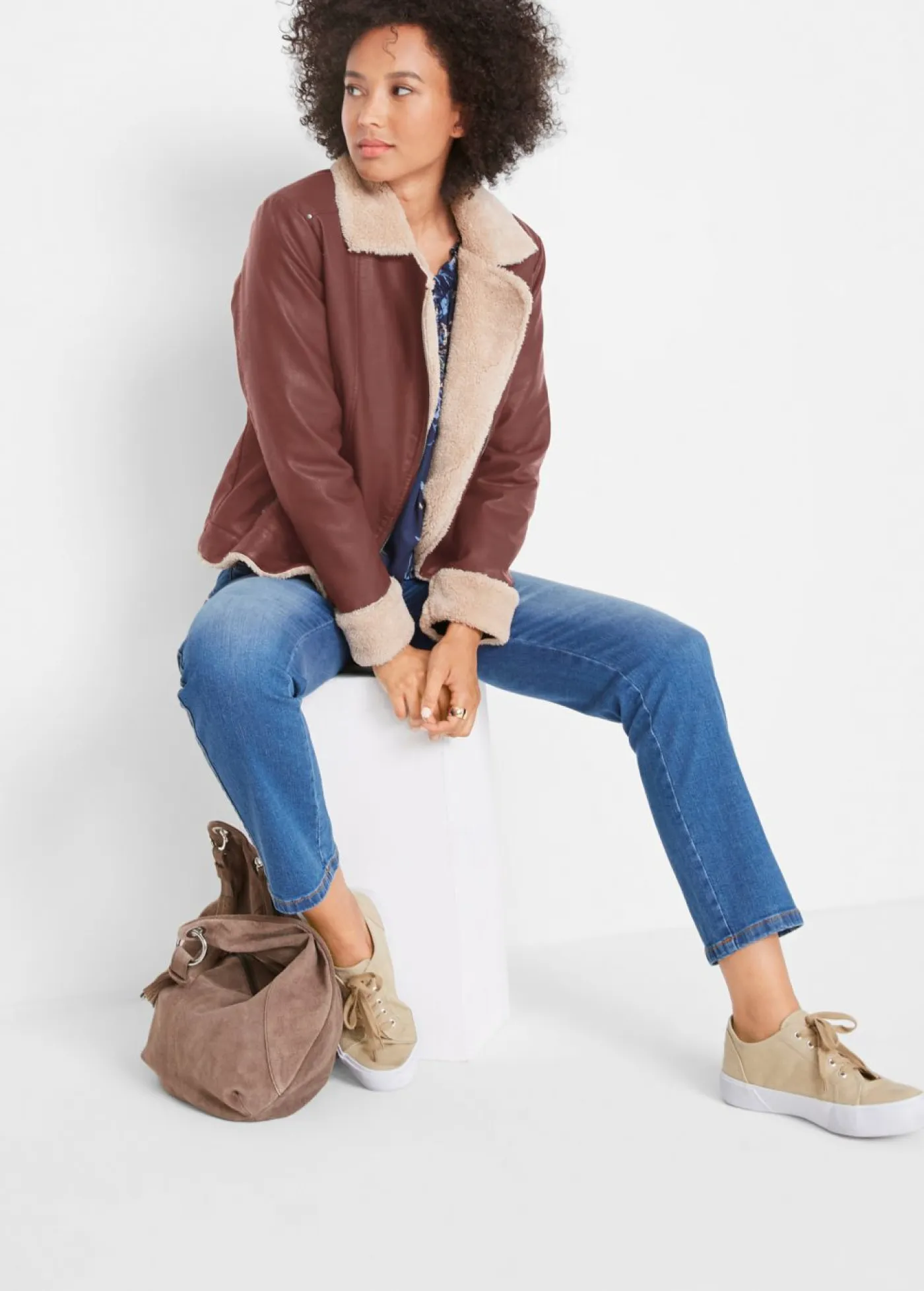 Chaqueta de piel sintética, con forro
