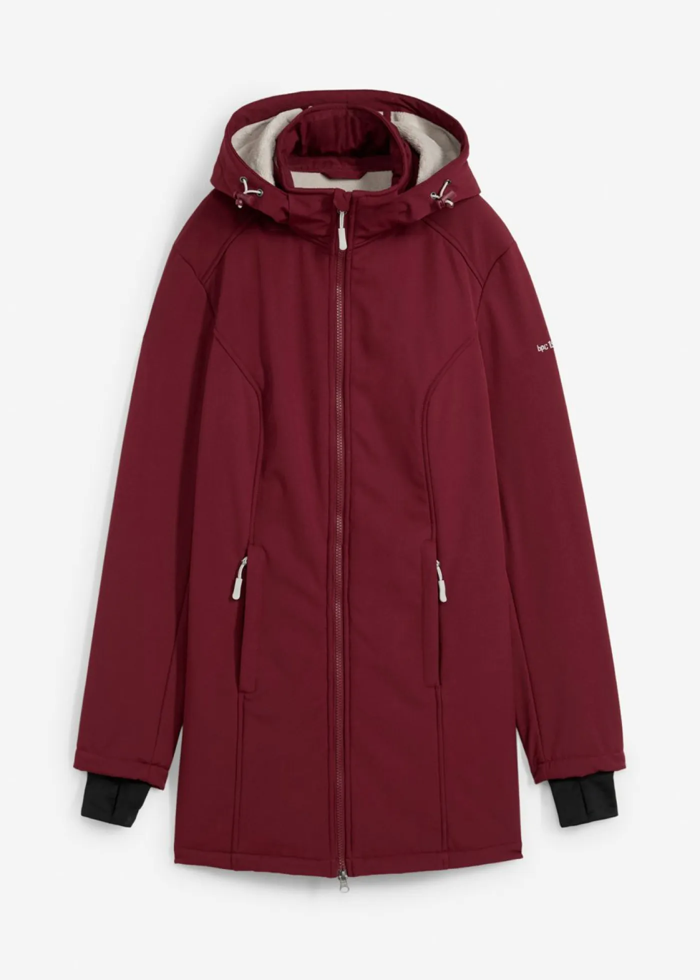 Chaqueta larga funcional softshell repelente al agua, forro polar suave