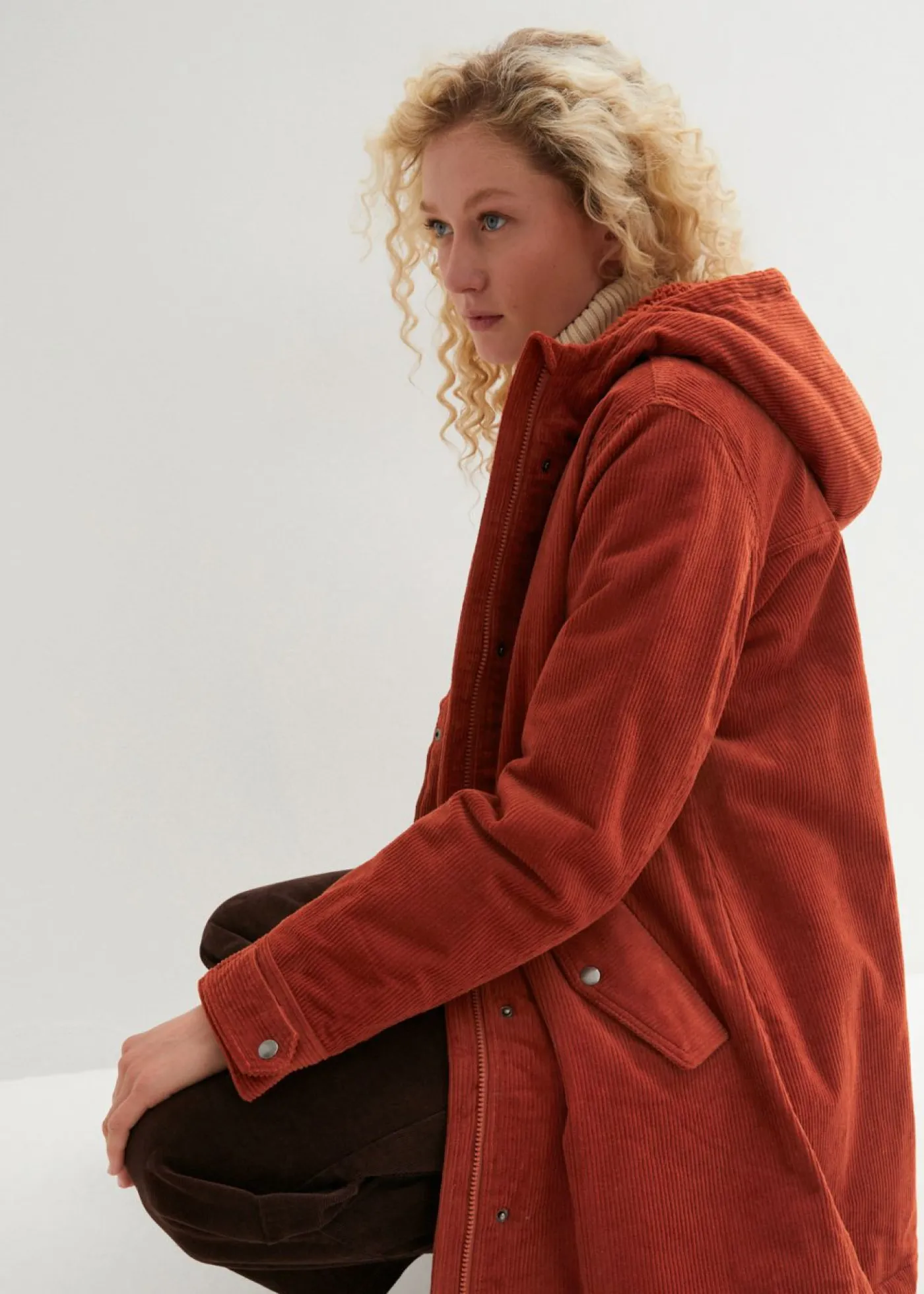 Parka moderna de pana con forro polar agradable en la capucha. Largo de aprox. 86 cm en todas las tallas. Se puede lavar a máquina.