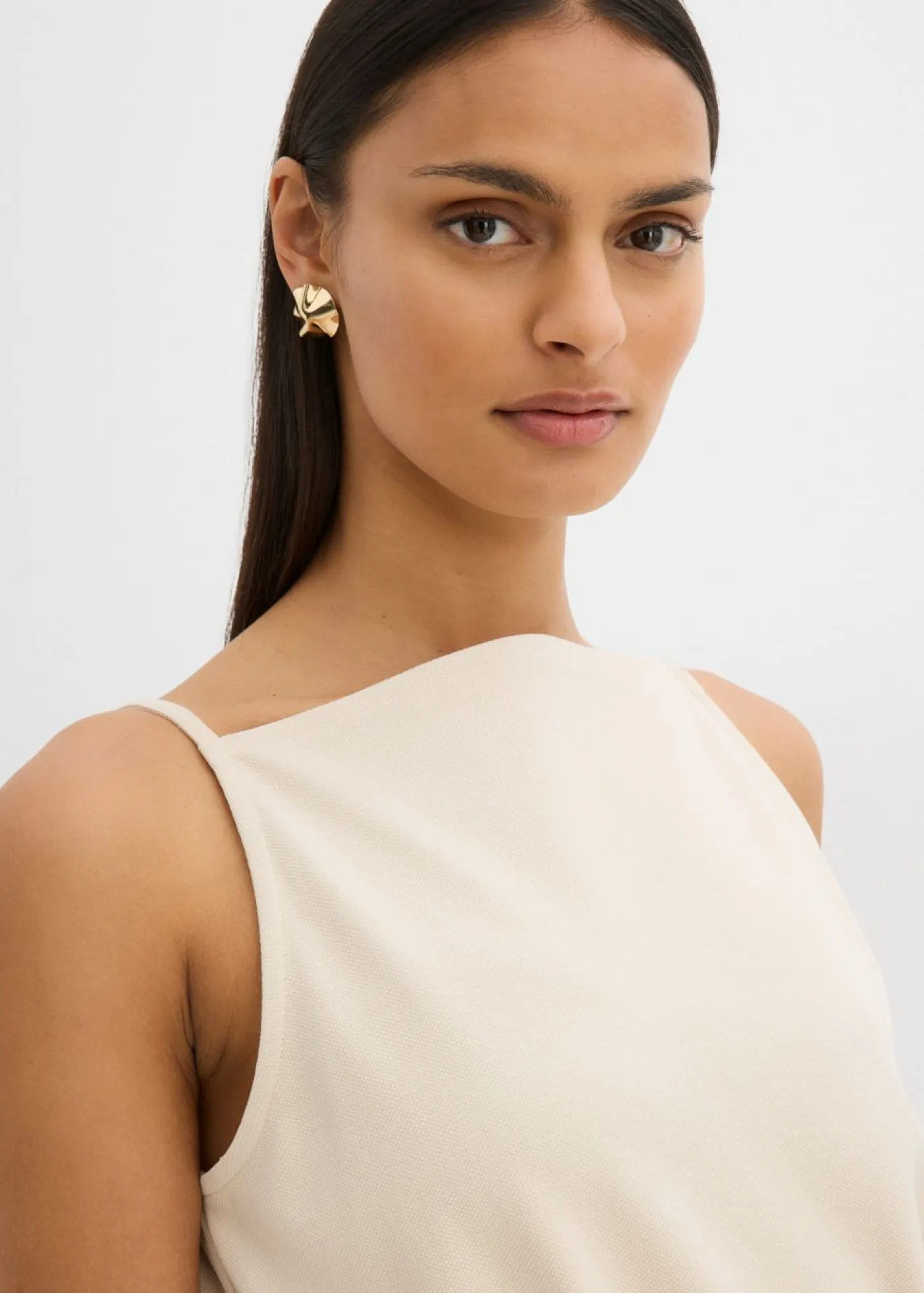 Top sin mangas con cinturón estrecho de piqué.