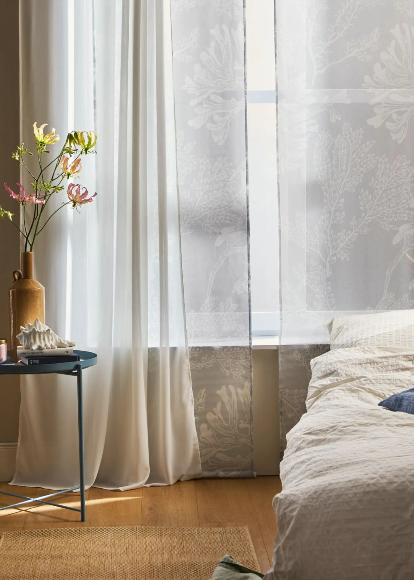 Cortina con estampado de flores (1 unidad), velcro