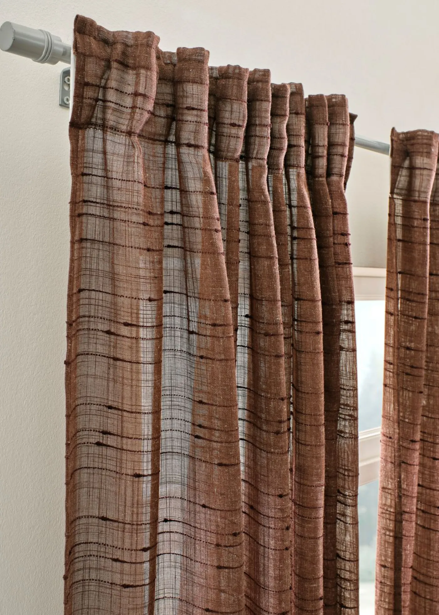 Cortina con aspecto natural. Gran aspecto natural: Nuestra cortina enamora con su aspecto de lino natural. Los espesores de color claro resaltan su gran estructura. La semitransparencia juega con la luz entrante y, al mismo tiempo, mantiene alejadas las miradas indiscretas. Nuestra cortina de fácil cuidado encaja perfectamente con diferentes conceptos de decoración.