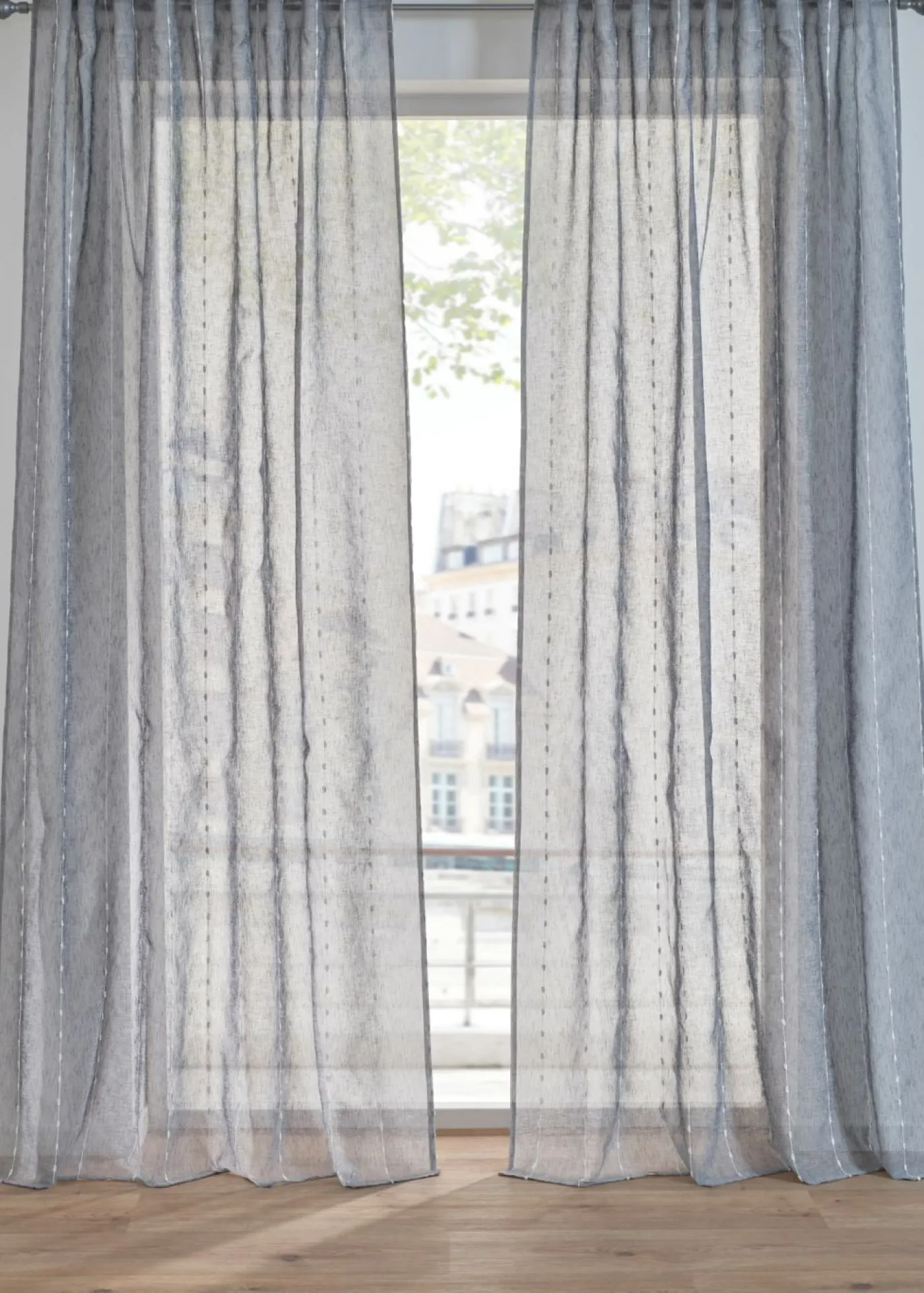 Cortina con rayas tejidas (1 unidad), cinta multifunción