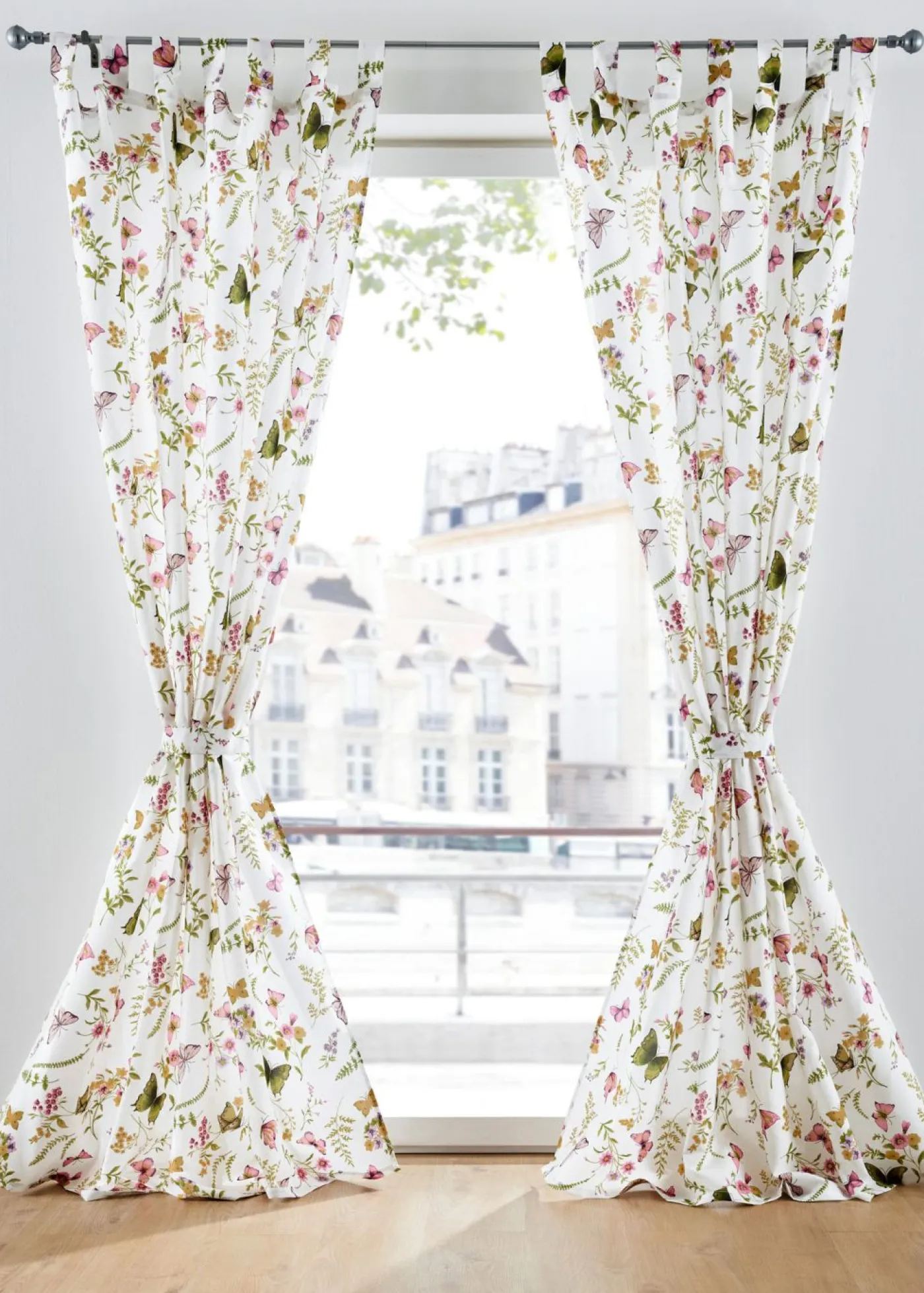 Colorida cortina de microfibra. La cortina evoca la primavera en la ventana. No solo destaca por sus colores brillantes, sino también por su diseño moderno y fresco con motivos de mariposas y flores. La cortina opaca se ha confeccionado con microfibra de calidad, por lo que logra una caída elegante y permite que entre la luz de forma moderada. La cortina se entrega con un alzapaños a juego.