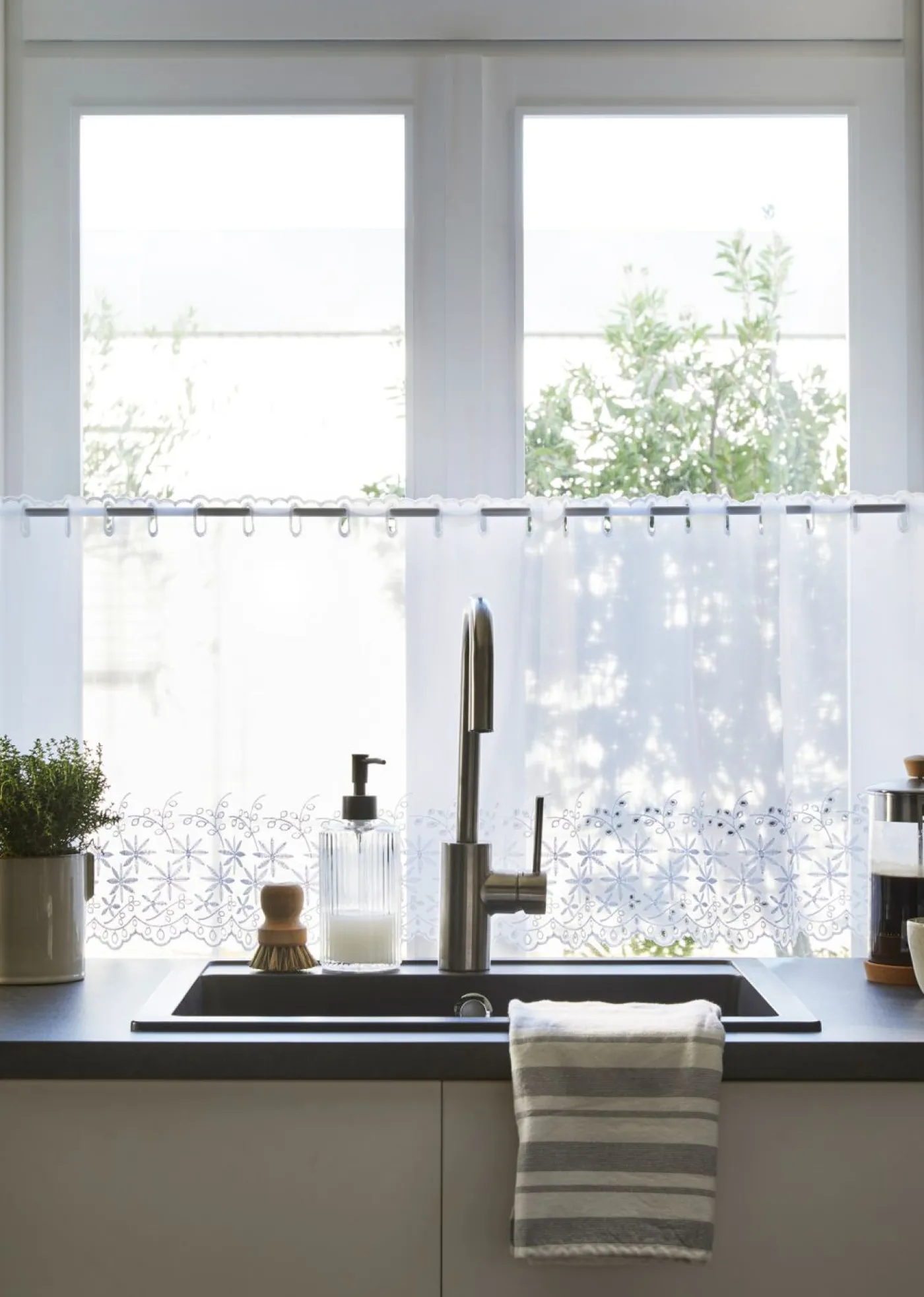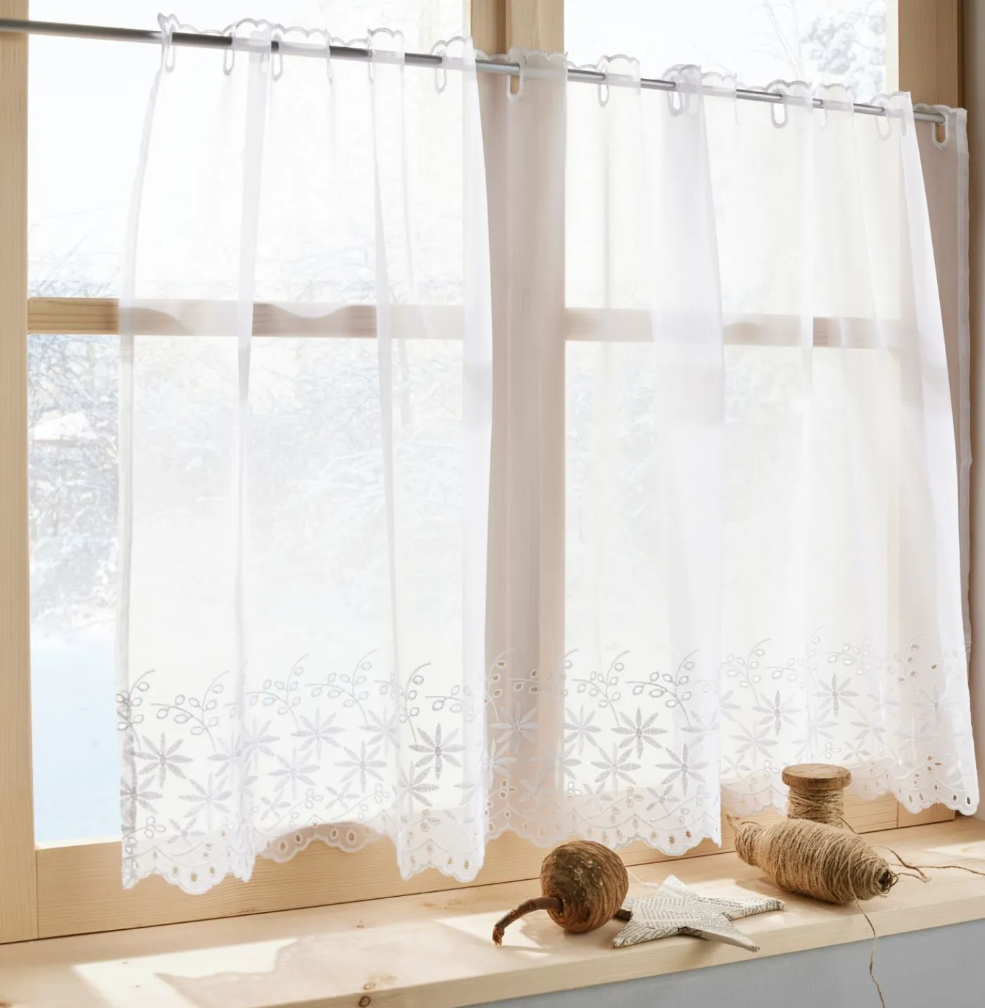 Visillo con bordado calado, con ollados