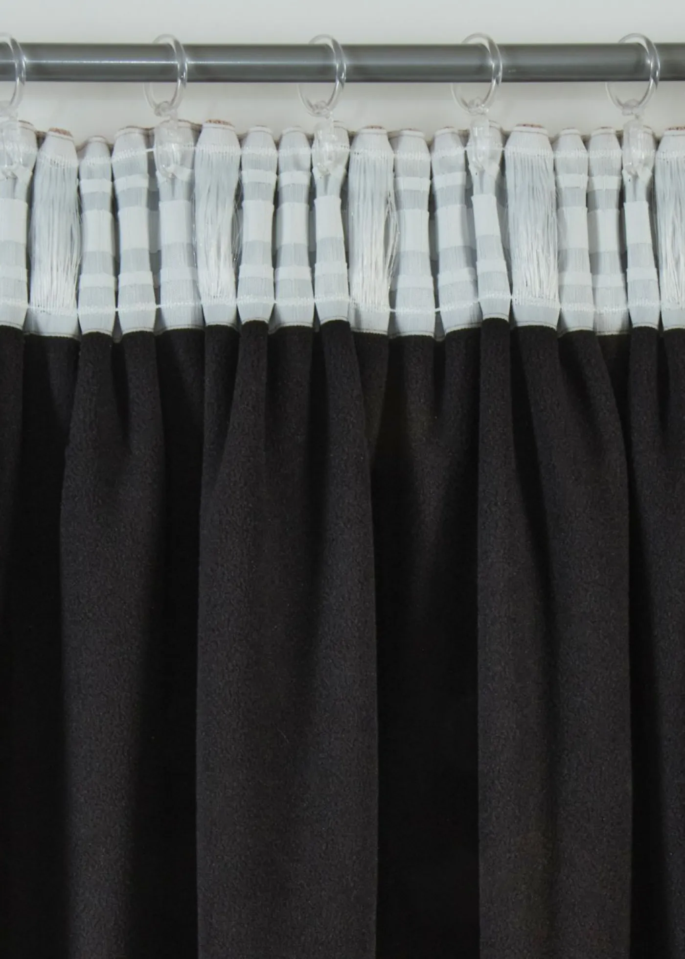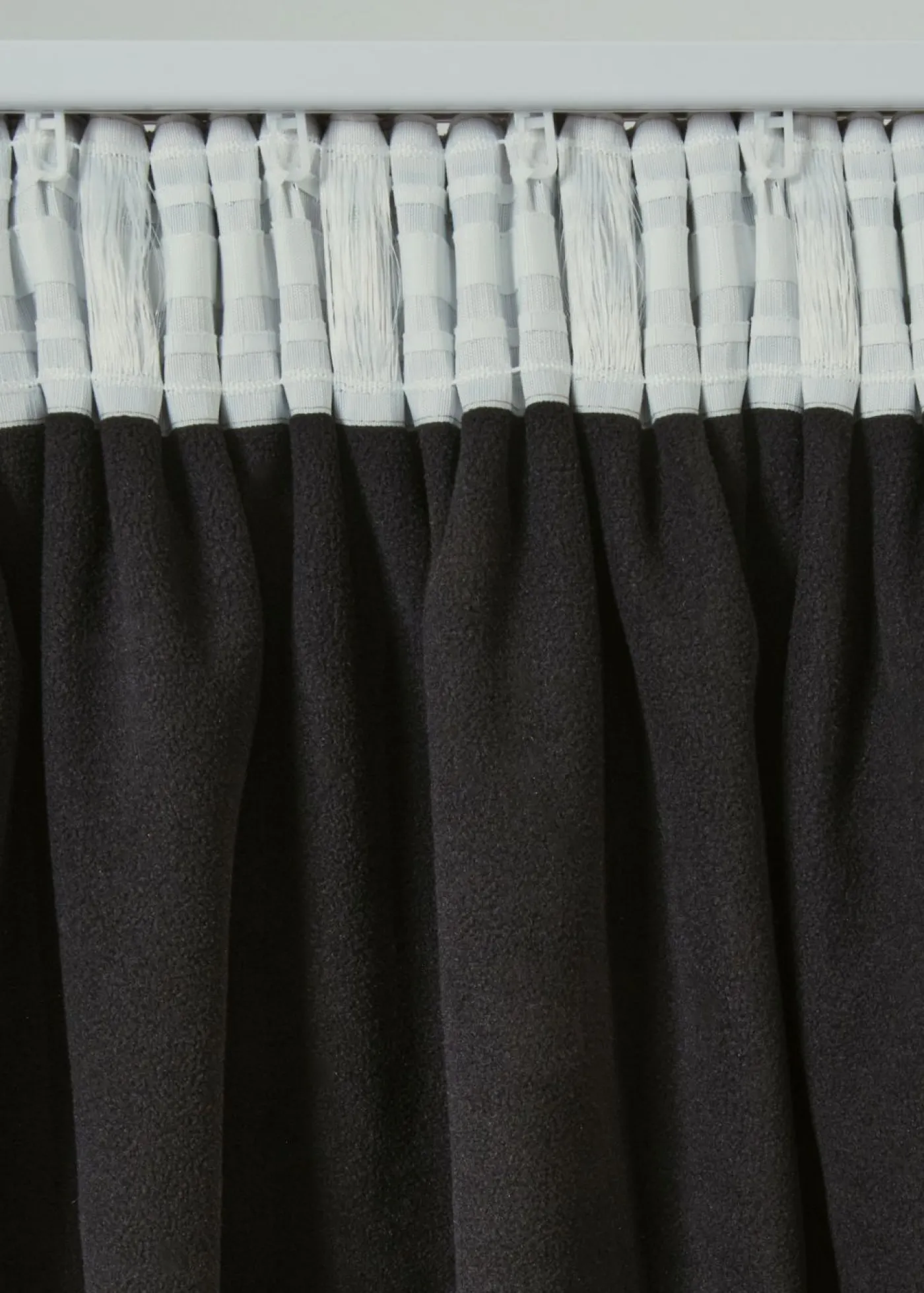 Cortina con función térmica. La cortina es un elemento todoterreno, ya que es decorativa, pero también puede actuar como aislante acústico y térmico gracias a su acabado. El reverso se ha confeccionado con forro polar negro de calidad. Por lo tanto, es ideal para puertas de entrada o ventanas con corrientes de aire.