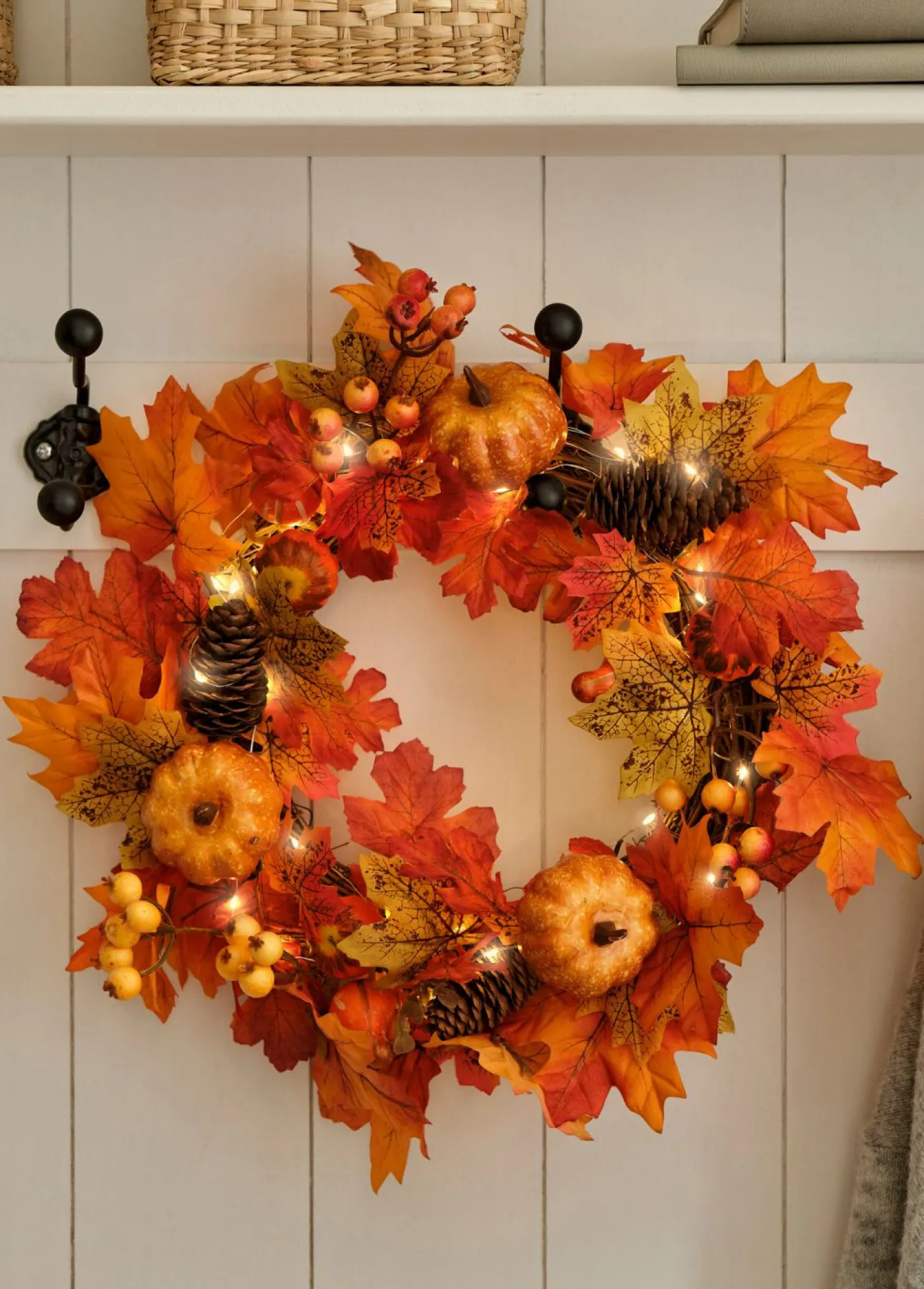 Decoración otoñal para puertas con 50 LED. La entrada será un maravilloso atractivo.