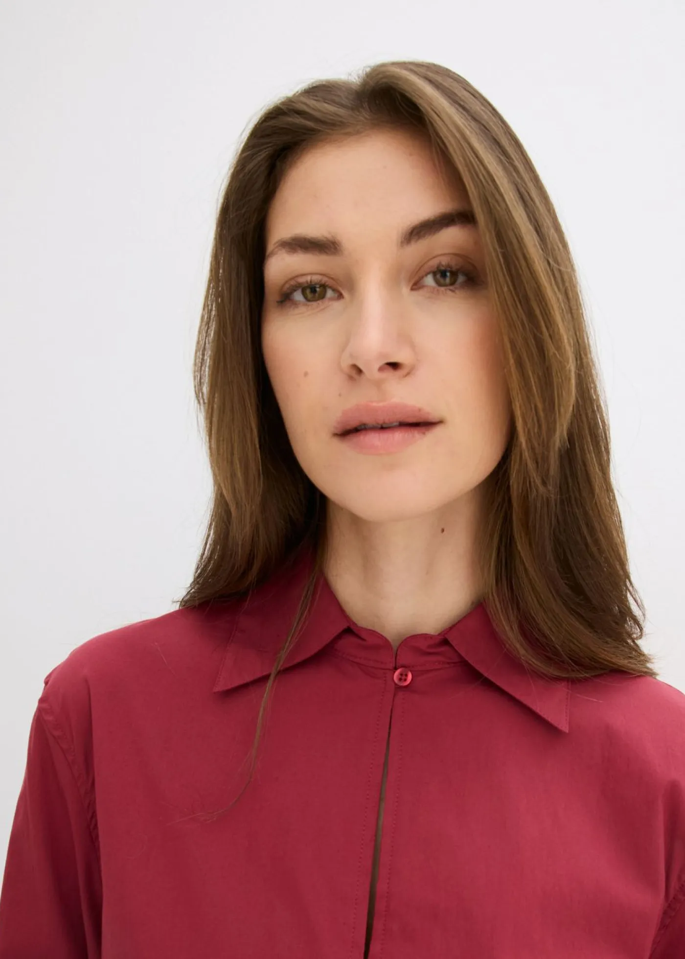 Blusa oversize con cuello inglés y botones en la parte delantera.