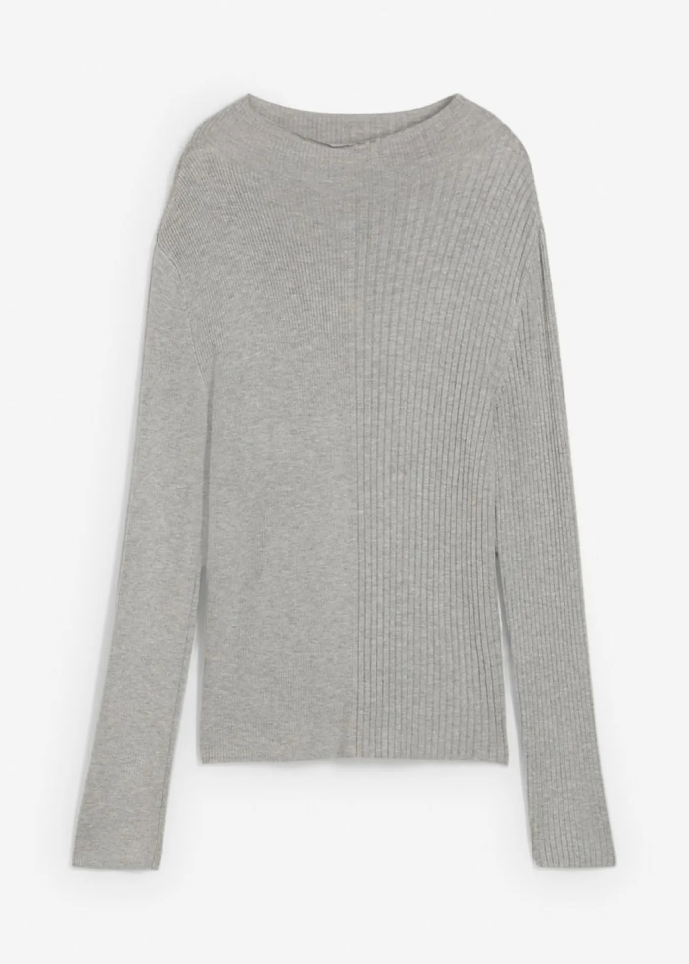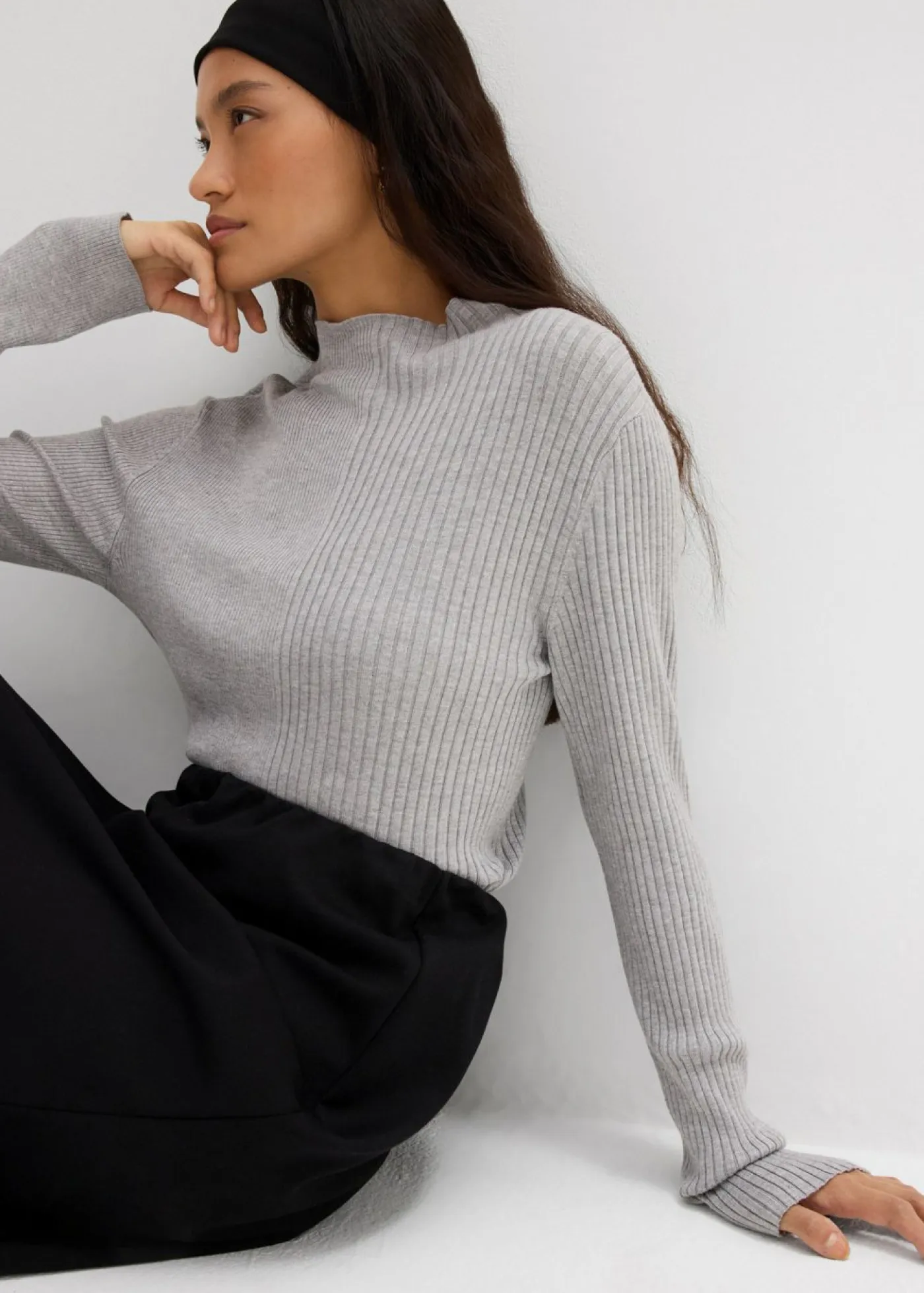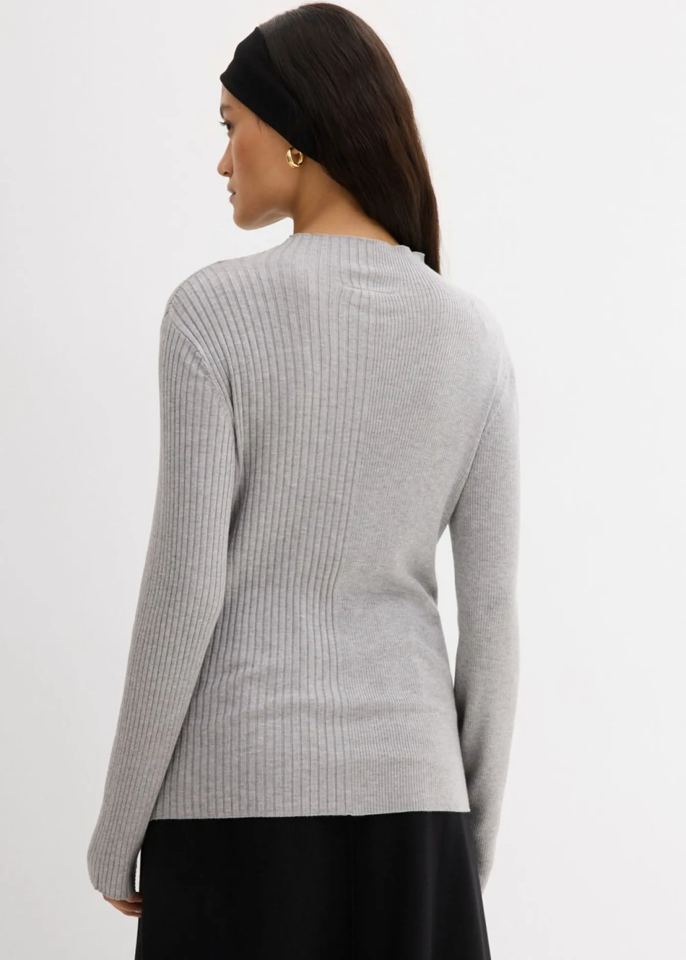 Camiseta ajustada de punto de canalé con manga larga y cuello vuelto.