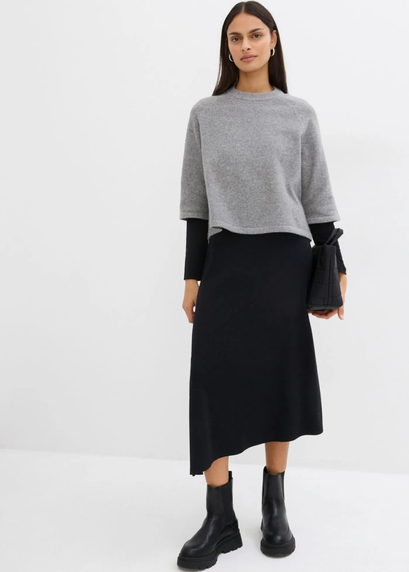 Camiseta holgada de punto con cuello redondo y mangas cortas de canalé.
