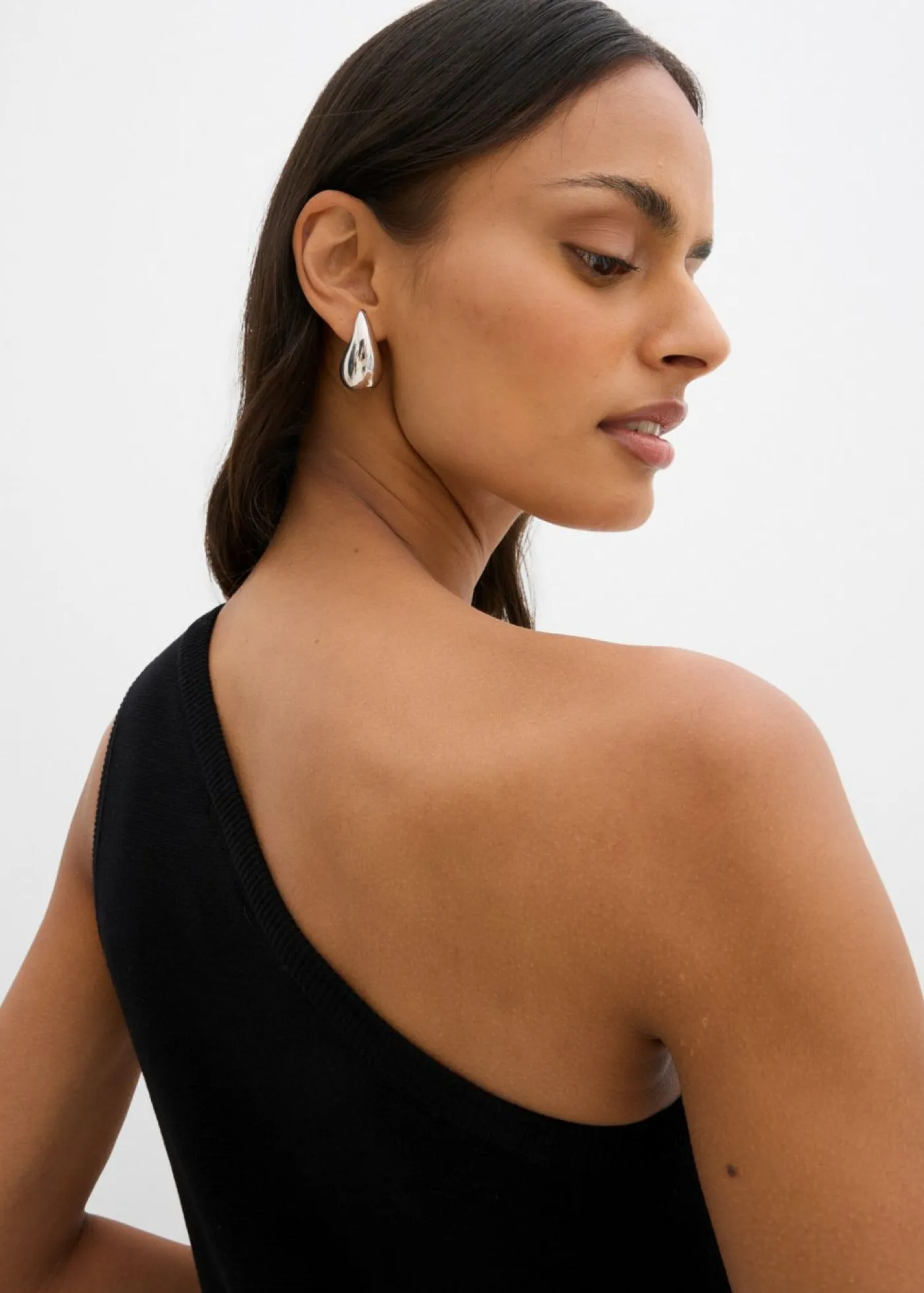 Top sin mangas con corte ajustado y hombros asimétricos.