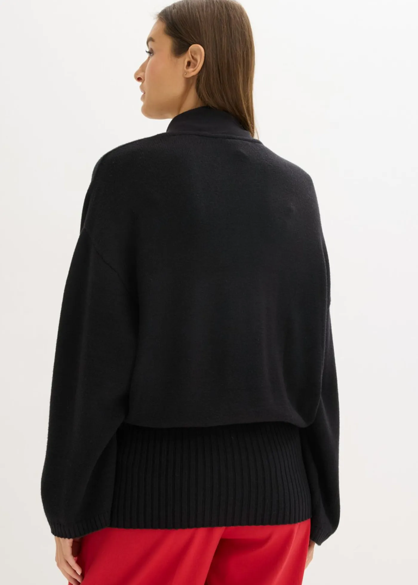 Jersey holgado con cinturilla ancha de canalé y detalle de bufanda en el cuello.
