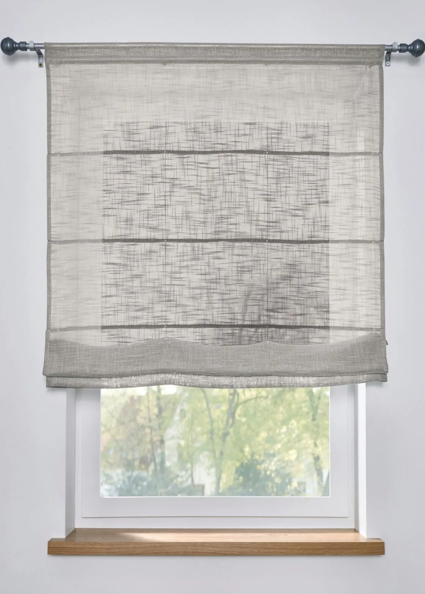Moderno estor enrollable con aspecto de lino. Estor con un look de lino atemporal. Va genial con el estilo de casa de campo.