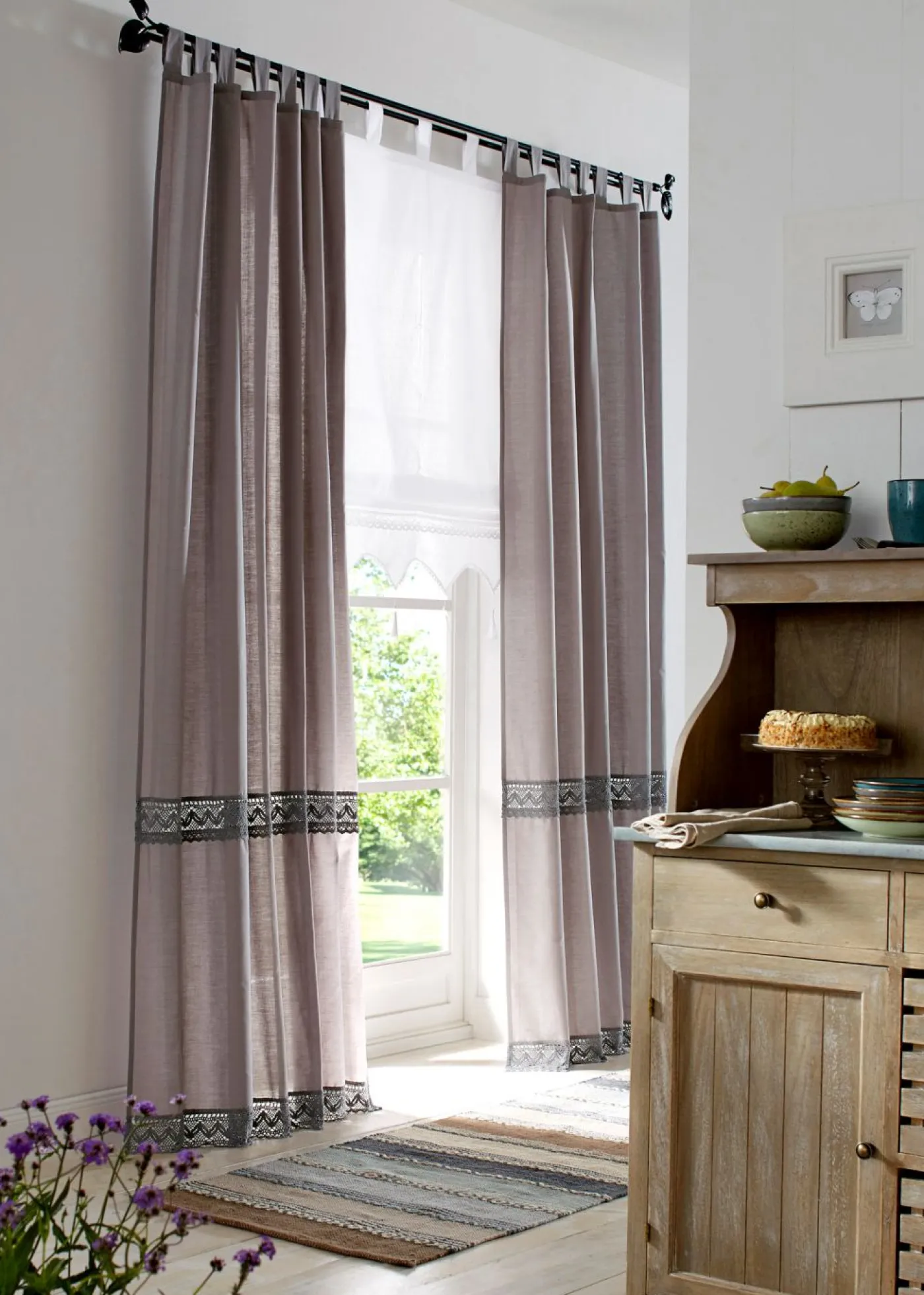 Moderno y con bordes de ganchillo. Este bonito estor de estilo casa de campo llama la atención por muchos detalles. Está confeccionado con tejidos semitransparentes: el elaborado acabado del borde llama perfectamente la atención mediante el inserto de ganchillo y crochet. Las borlas a juego representan otro bonito detalle y completan el aspecto general. Quite las borlas para lavarlo.