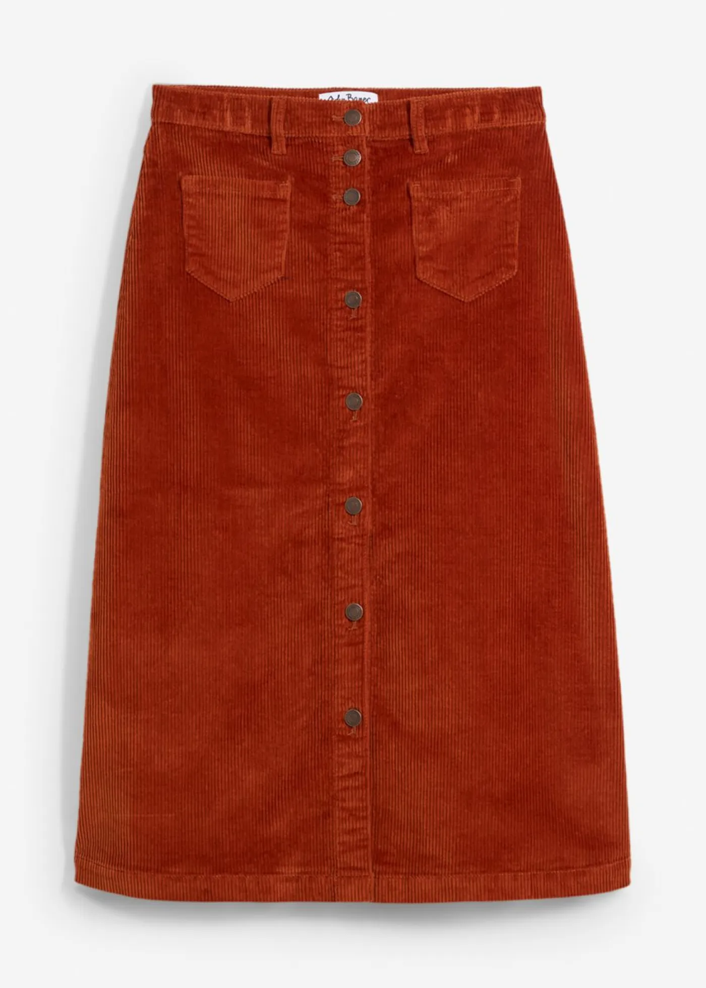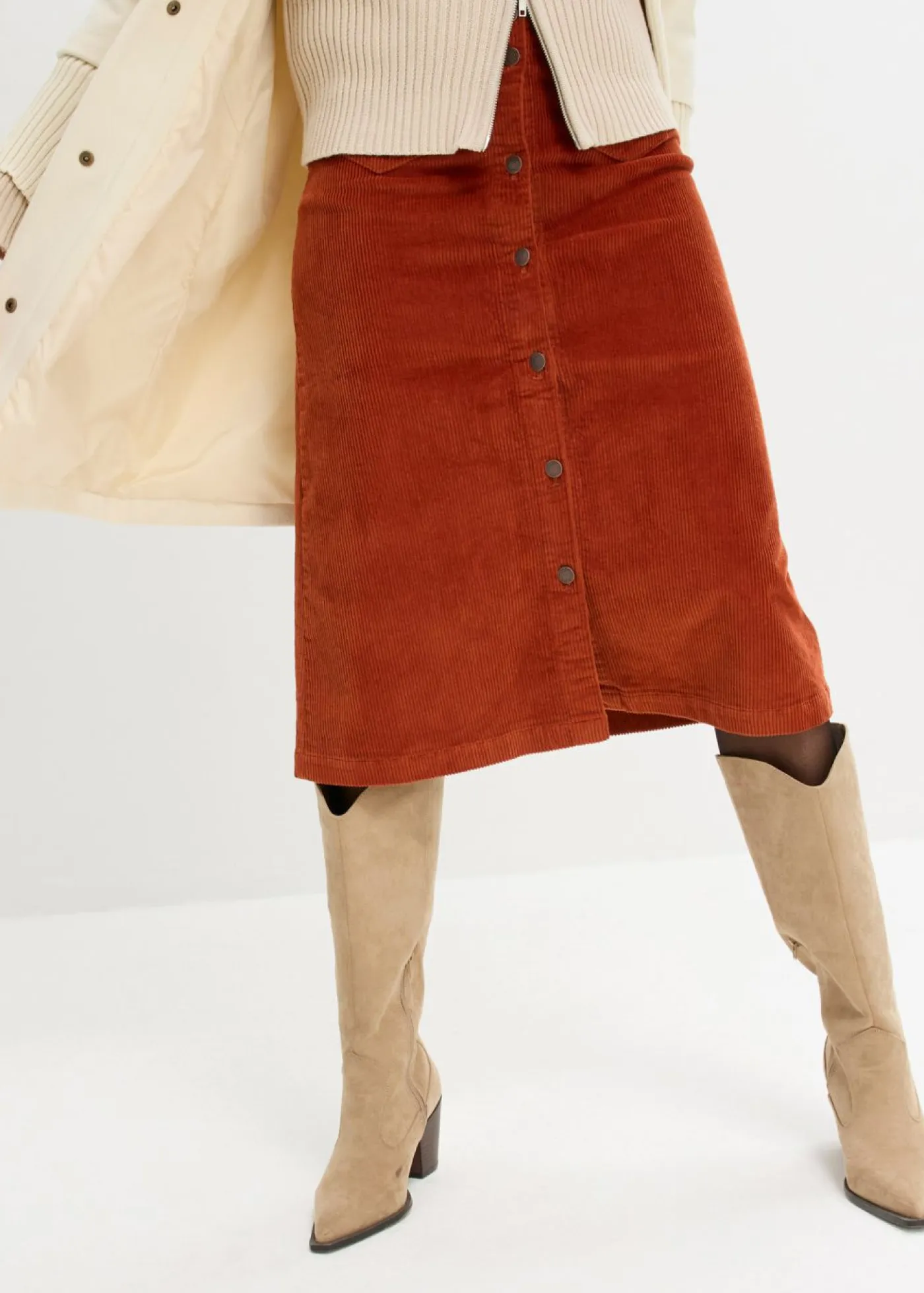Bonita falda de pana con elástico. Largo total de aprox. 50 cm en talla 42. Se puede lavar a máquina.