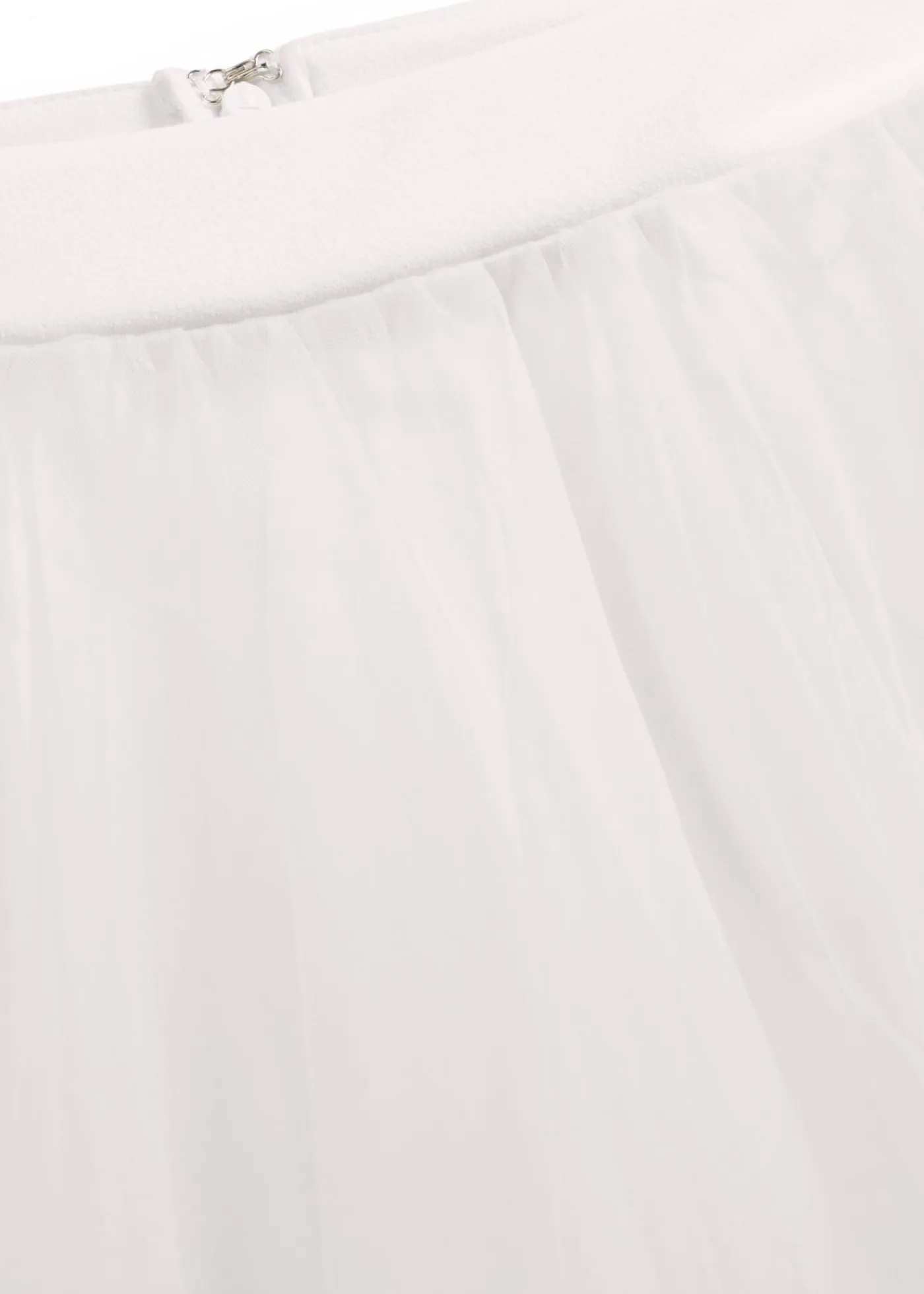 Femenina y romántica: falda larga de tul con capa de tul en color champán.