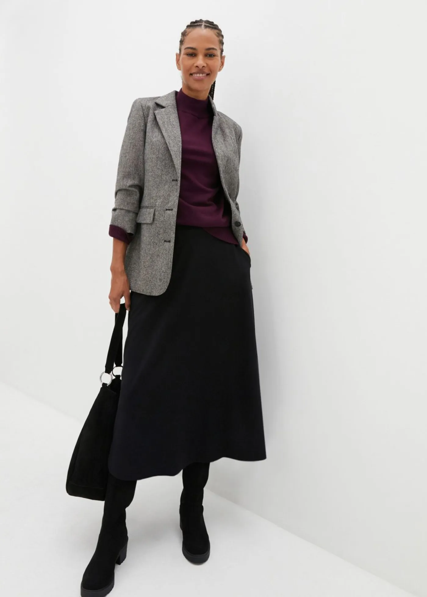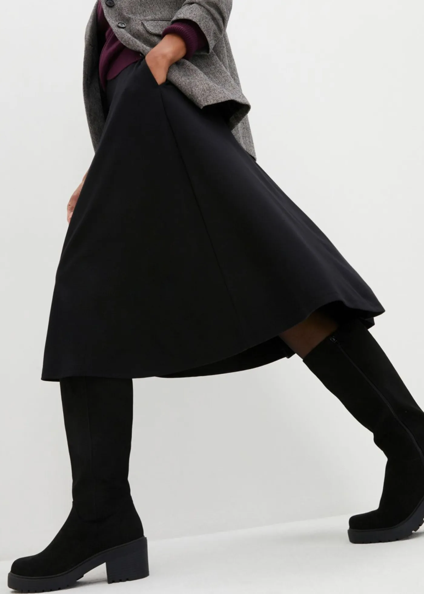 Falda acampanada con cintura elástica que envuelve la figura. Largo de aprox. 72 cm en talla 42. Se puede lavar a máquina.