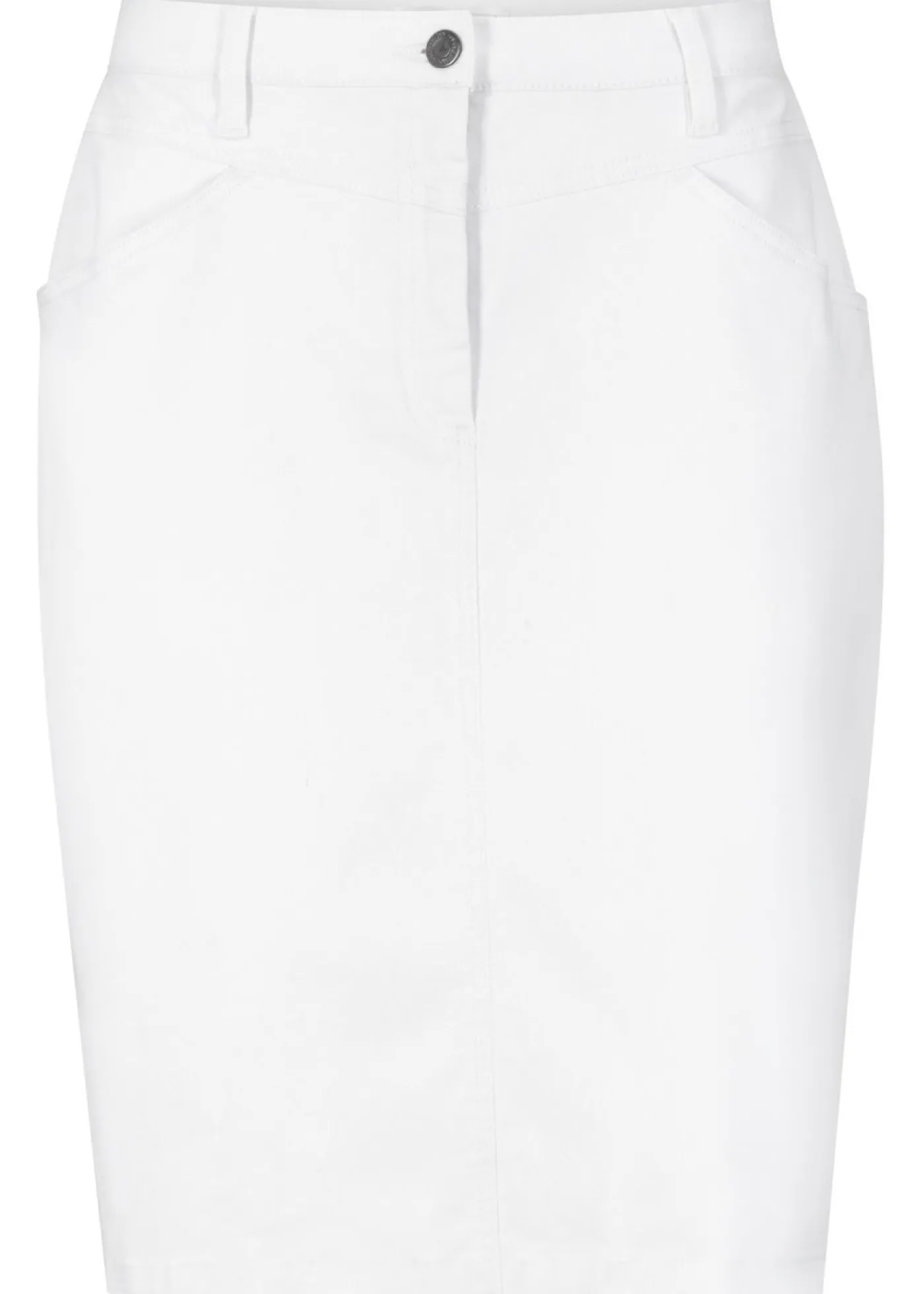 Falda vaquera de material elástico. No puedes equivocarte con esta clásica falda vaquera. El corte clásico, la forma recta y el color liso logran que la falda pueda combinarse fácilmente y que las mujeres con estilo gocen de una gran variedad de opciones de combinación. Tanto con una camiseta con estampado desenfadado para lograr una versión más deportiva como con una elegante blusa para el día a día de la oficina, esta falda vaquera combina con todas las ocasiones.