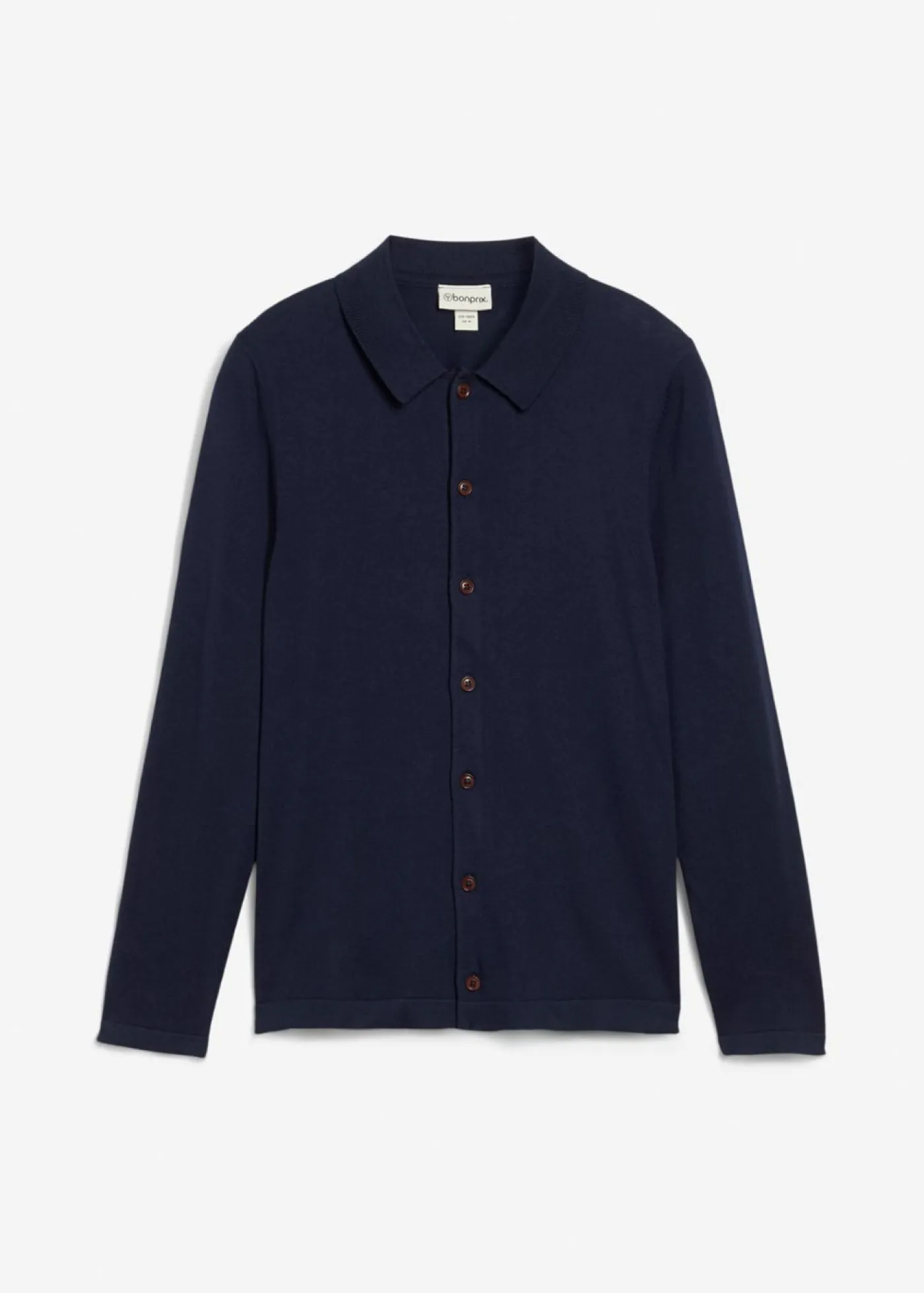 Cárdigan atemporal de lana merina suave y algodón transpirable.
