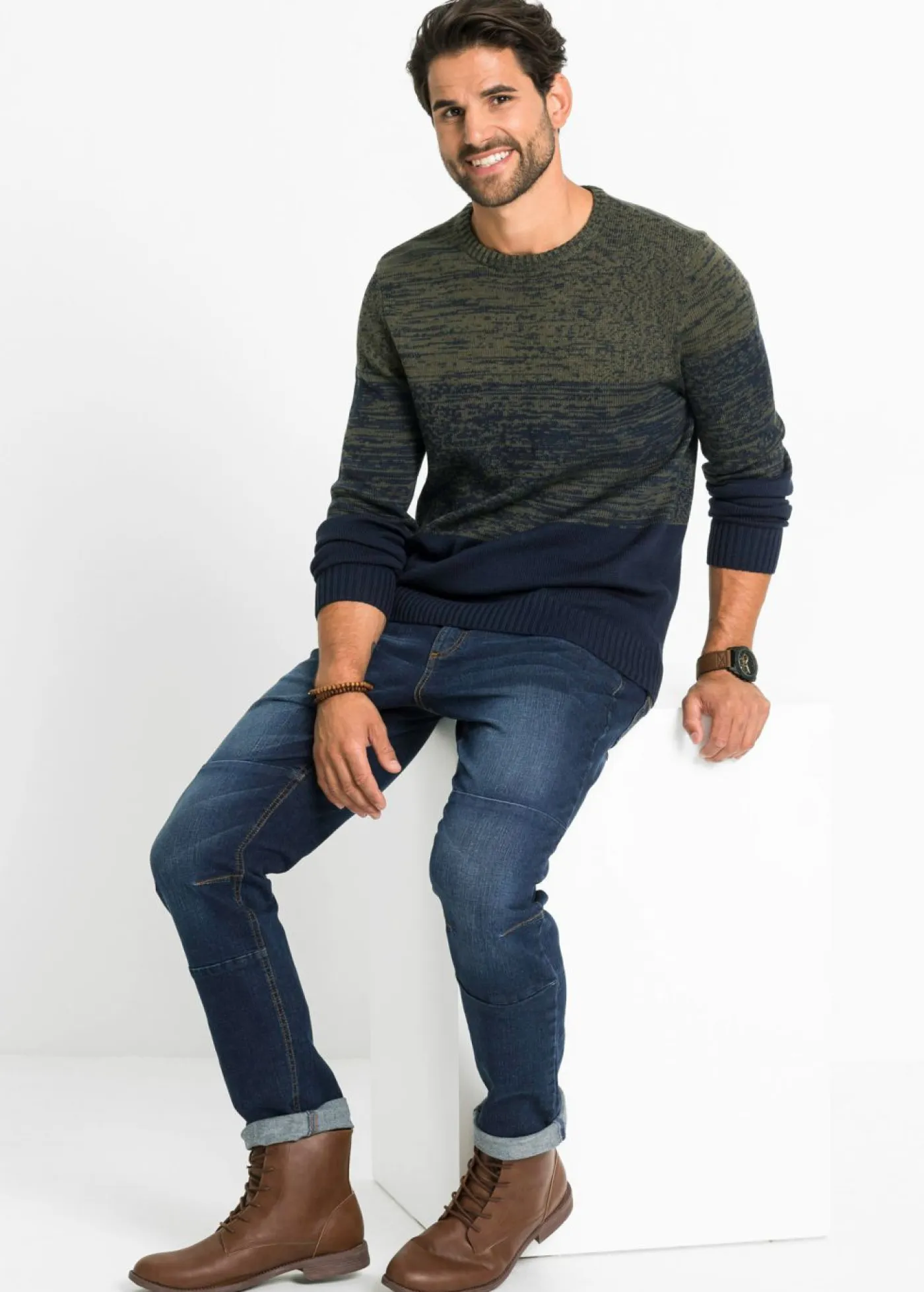 Moderno jersey con bloques de color. Nuestra colección especial de corte confort garantiza un ajuste cómodo incluso con más barriga. Los jerséis con corte cómodo especial son más anchos y largos en la zona delantera.