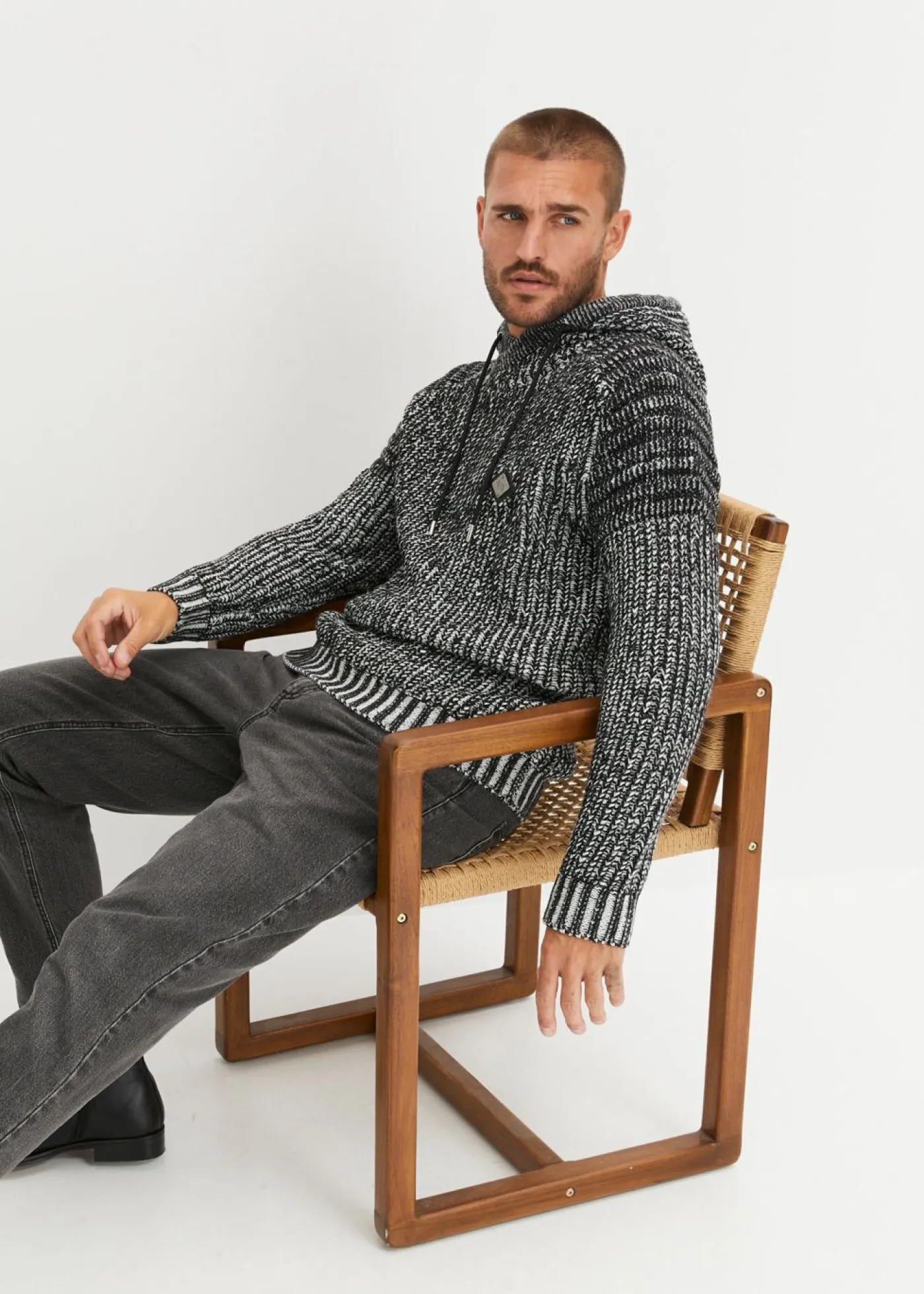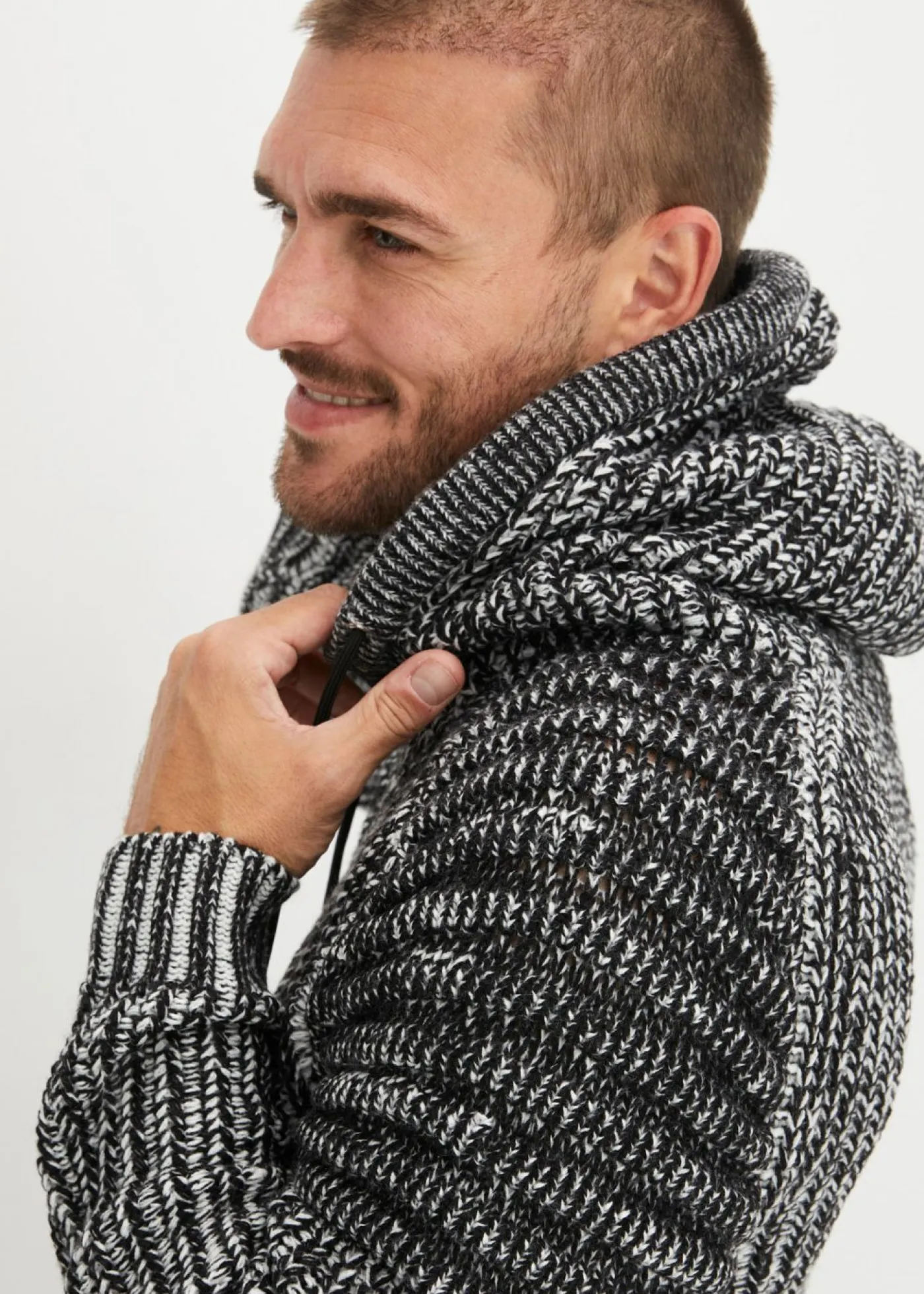 Jersey de punto grueso con capucha y detalles moteros
