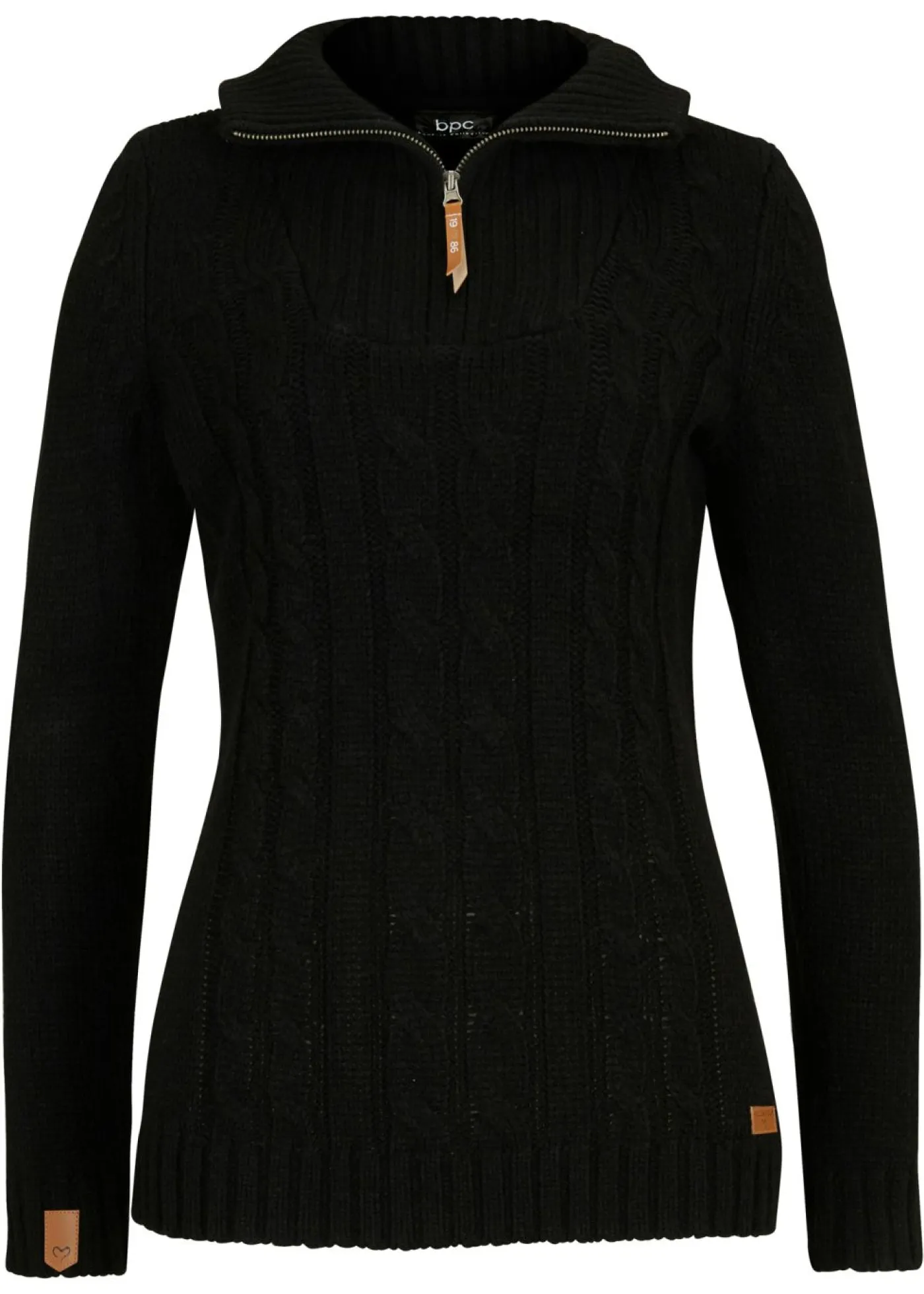 Jersey troyer con un bonito patrón trenzado y detalles de piel.