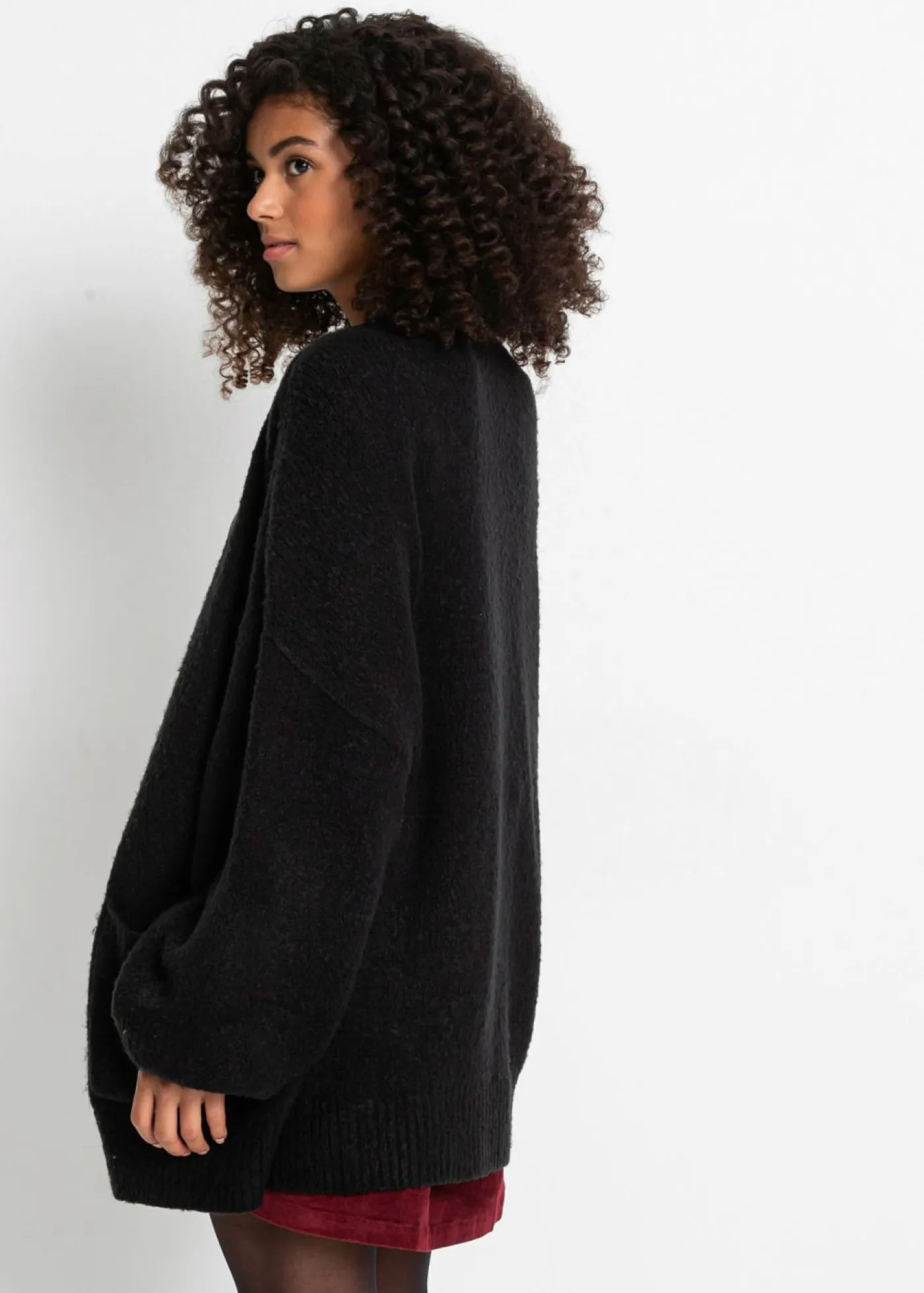 Chaqueta holgada de punto con bolsillos. Largo de aprox. 74 cm en talla 40/42. Se puede lavar a máquina.