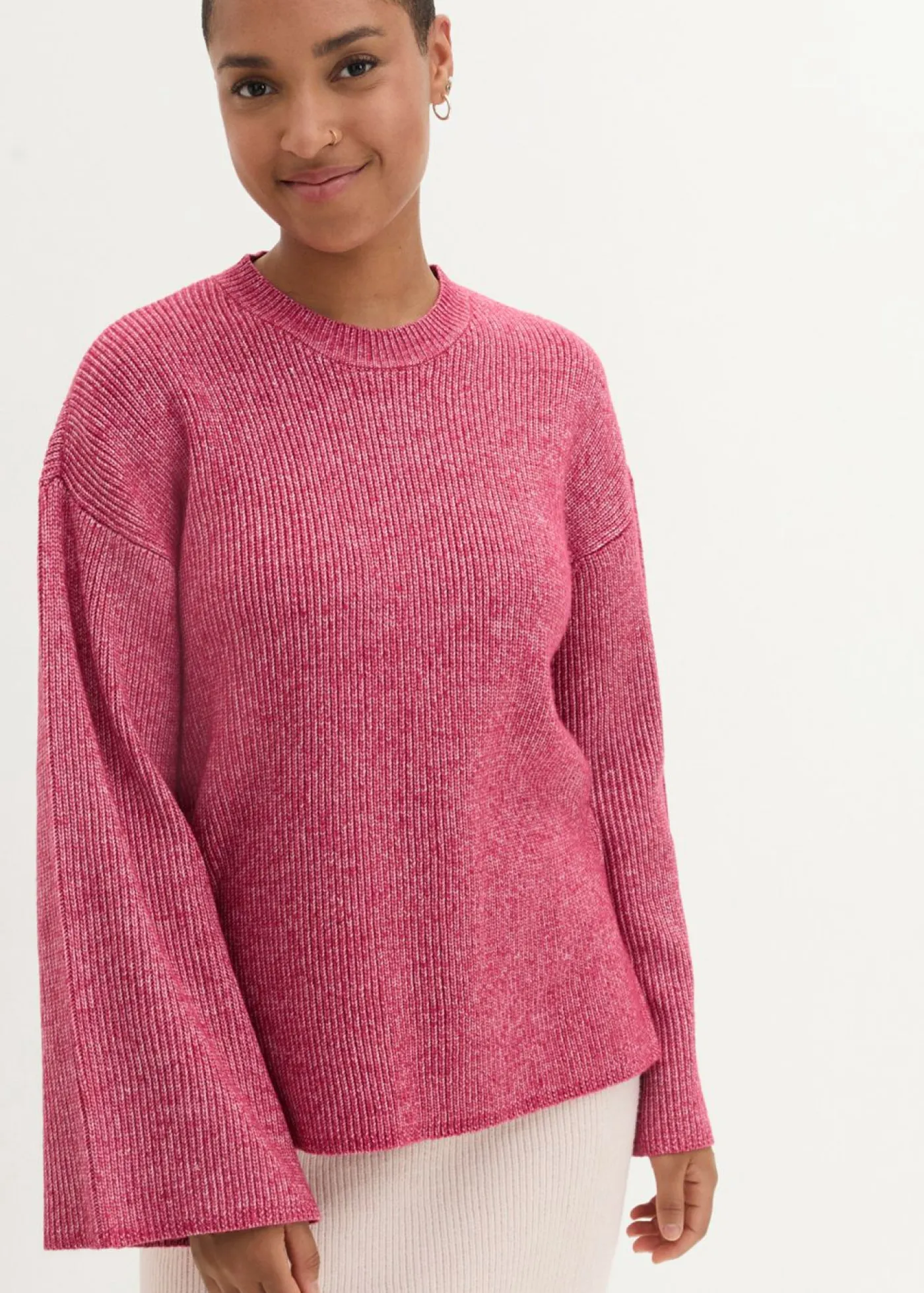 Favorecedor jersey tipo boxy de punto de canalé fino.