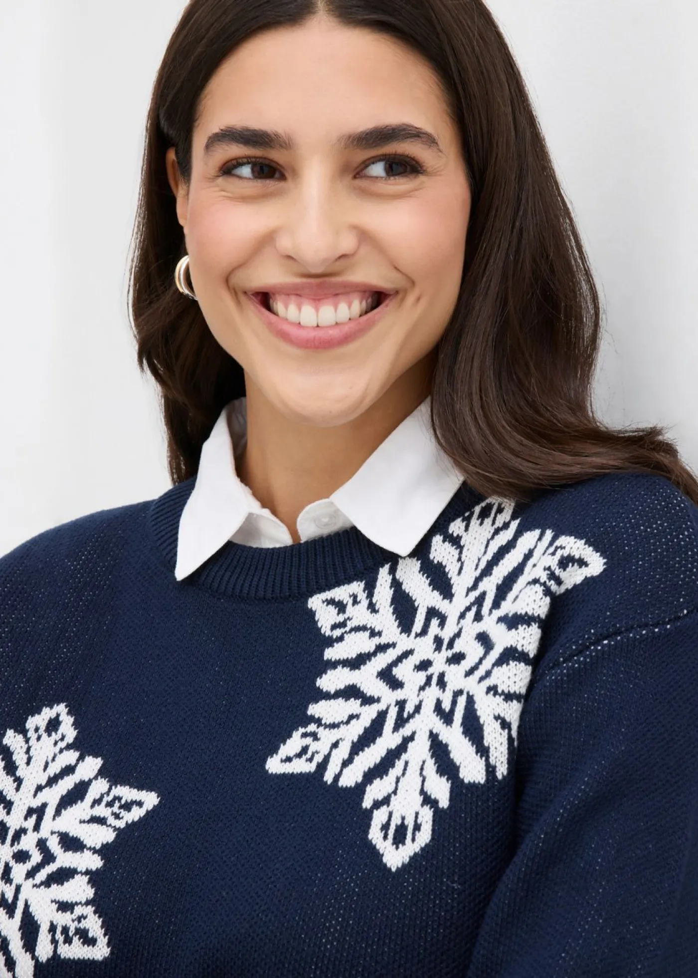 Jersey de cuello redondo con copos de nieve