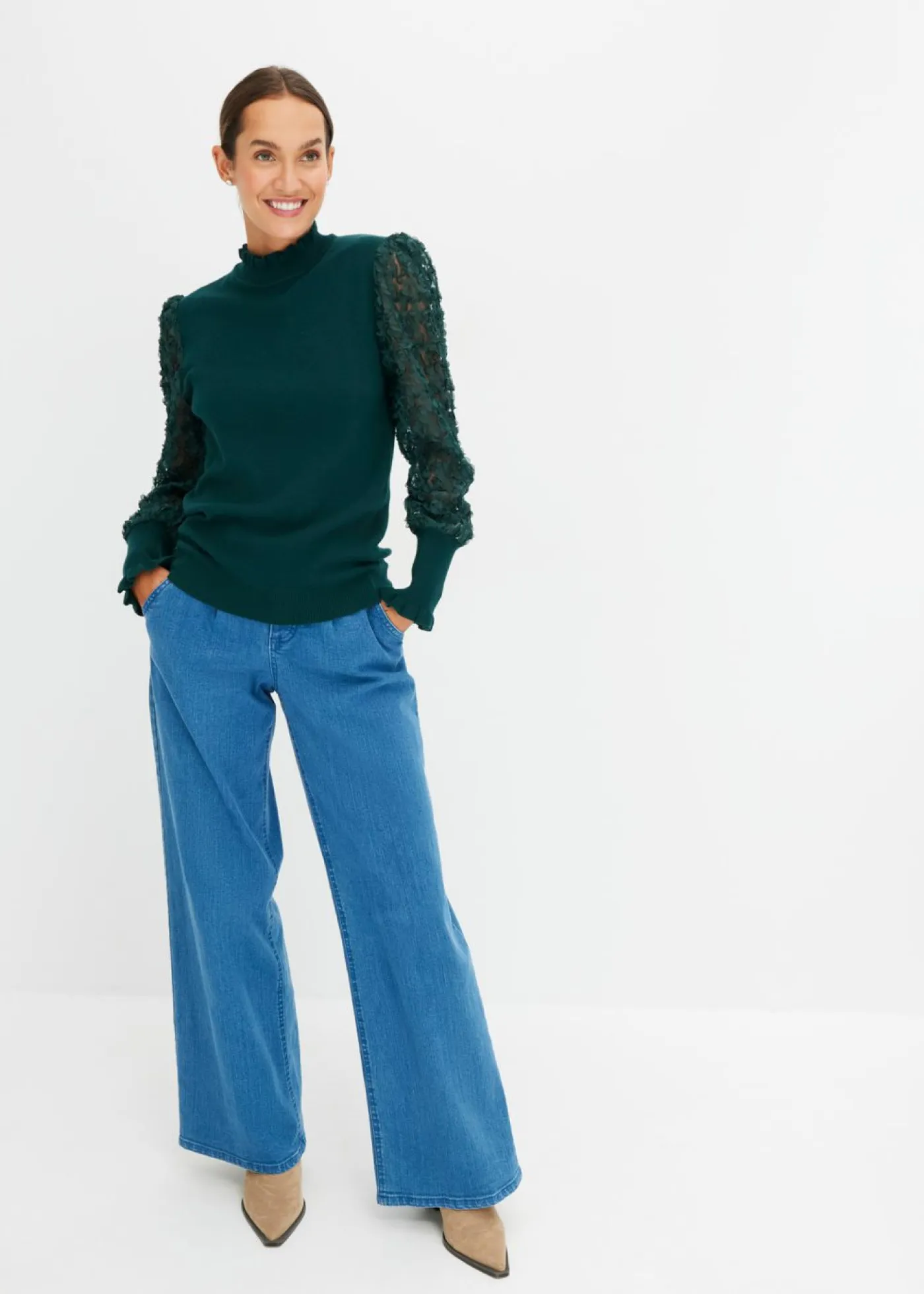 Moderno jersey con cuello vuelto y mangas transparentes. Moderno jersey de BODYFLIRT. El jersey cuenta con mangas decorativas.