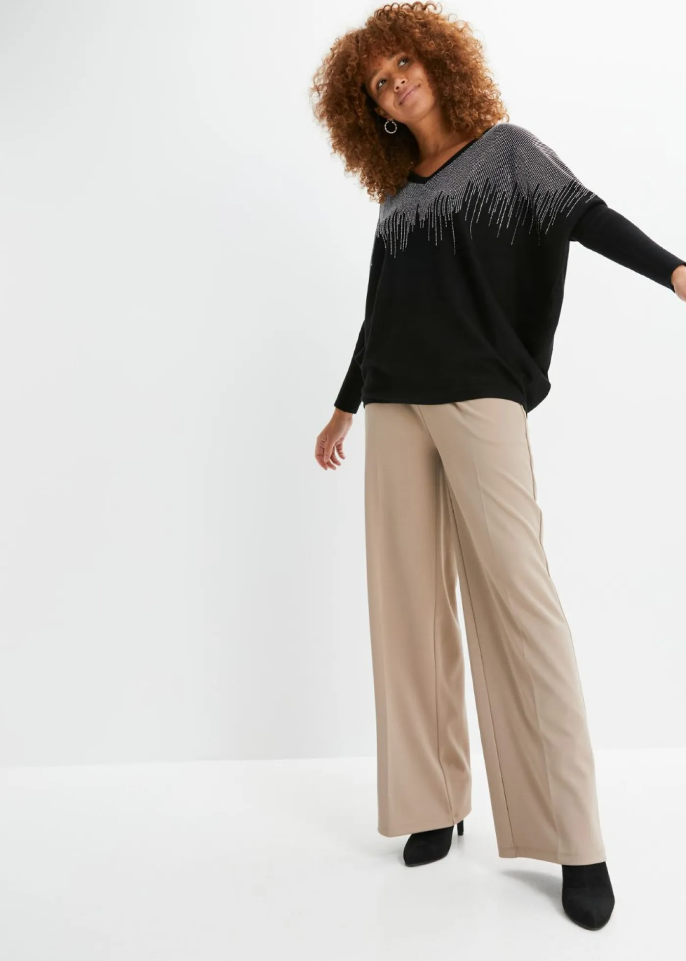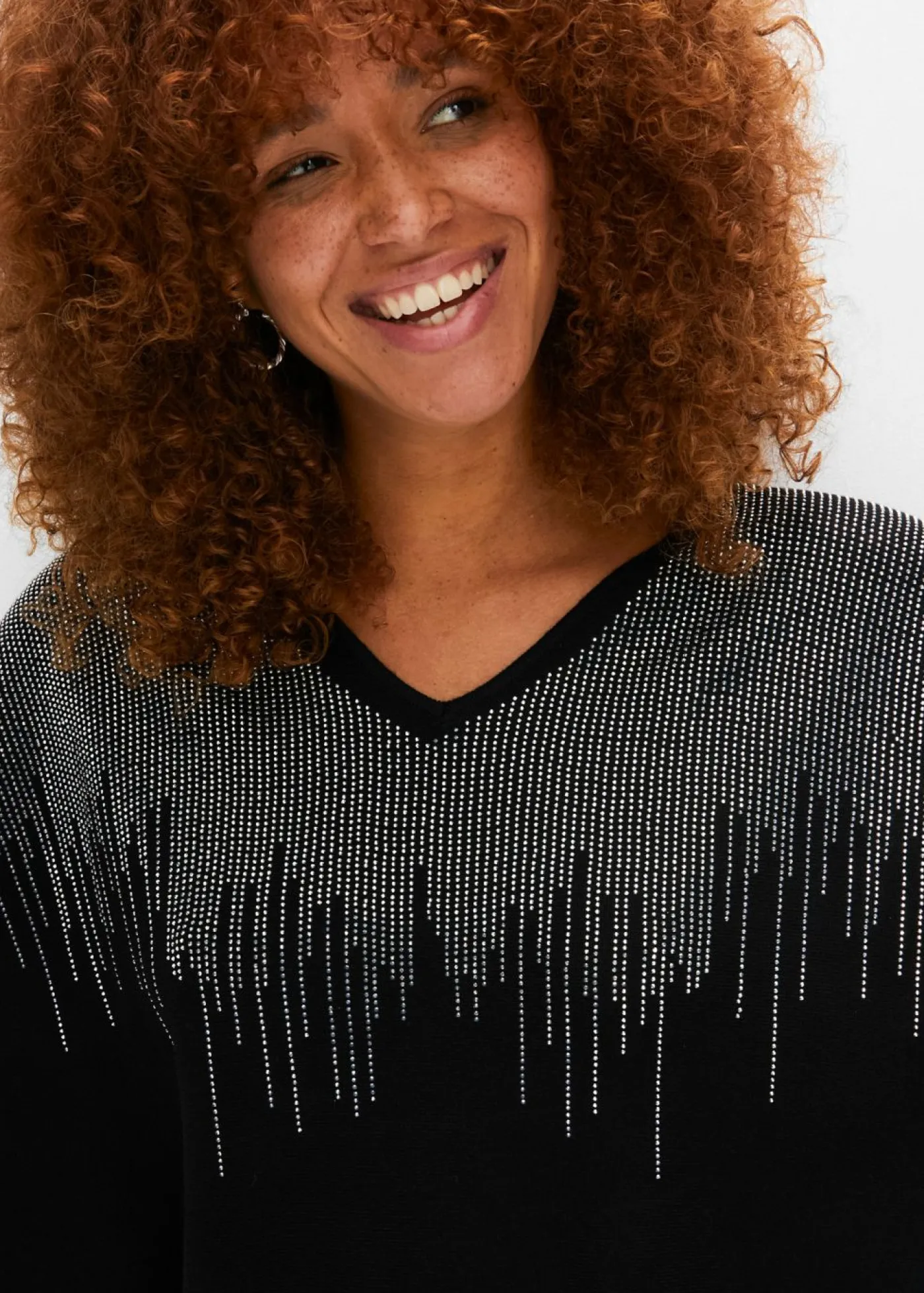 Jersey de punto fino con aplicación de piedras brillantes