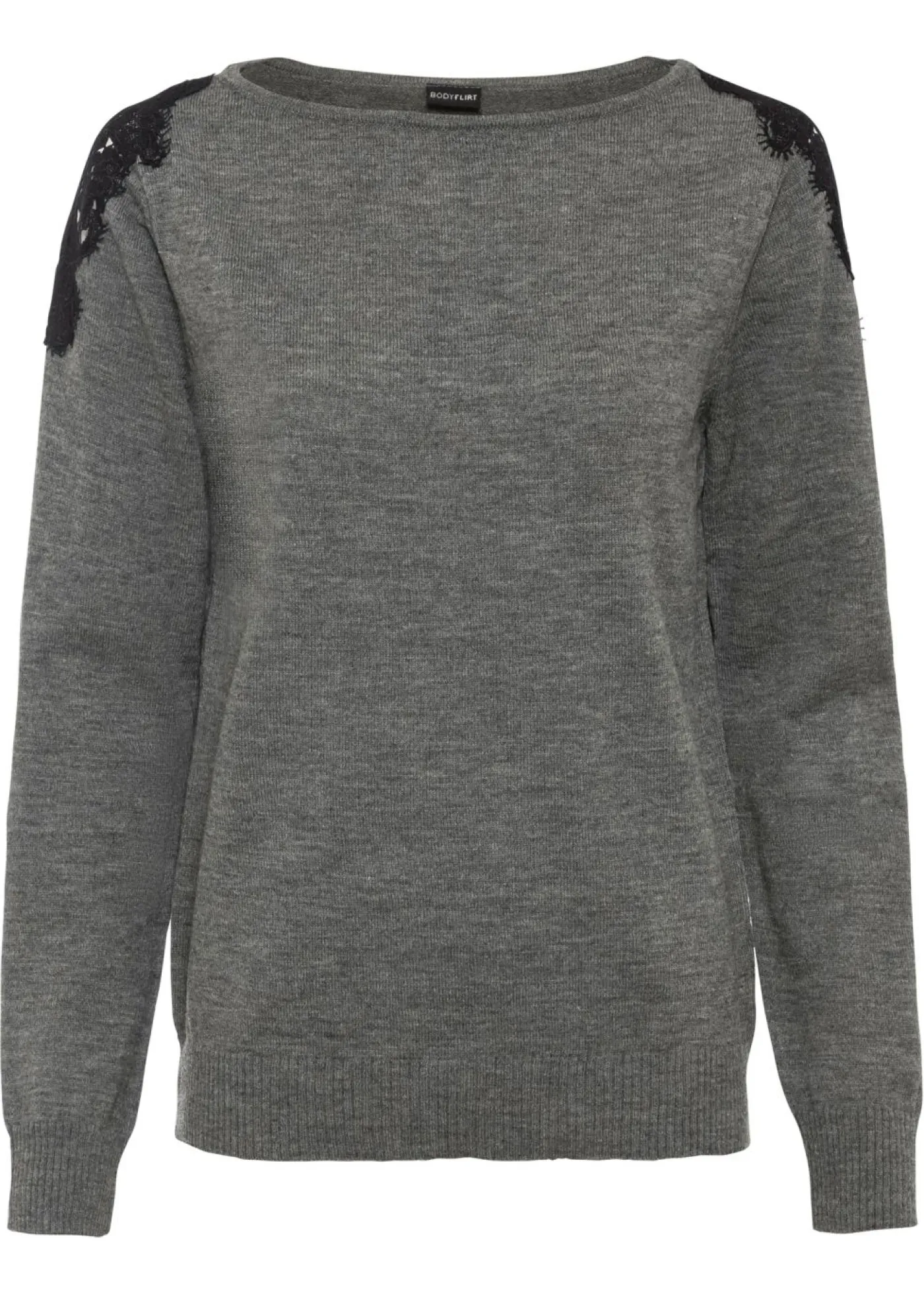 Jersey moderno con encaje de calidad. Moderno jersey de BODYFLIRT. El jersey, parcialmente transparente, está decorado con encaje en los hombros. Largo de aprox. 64 cm en talla 36/38.