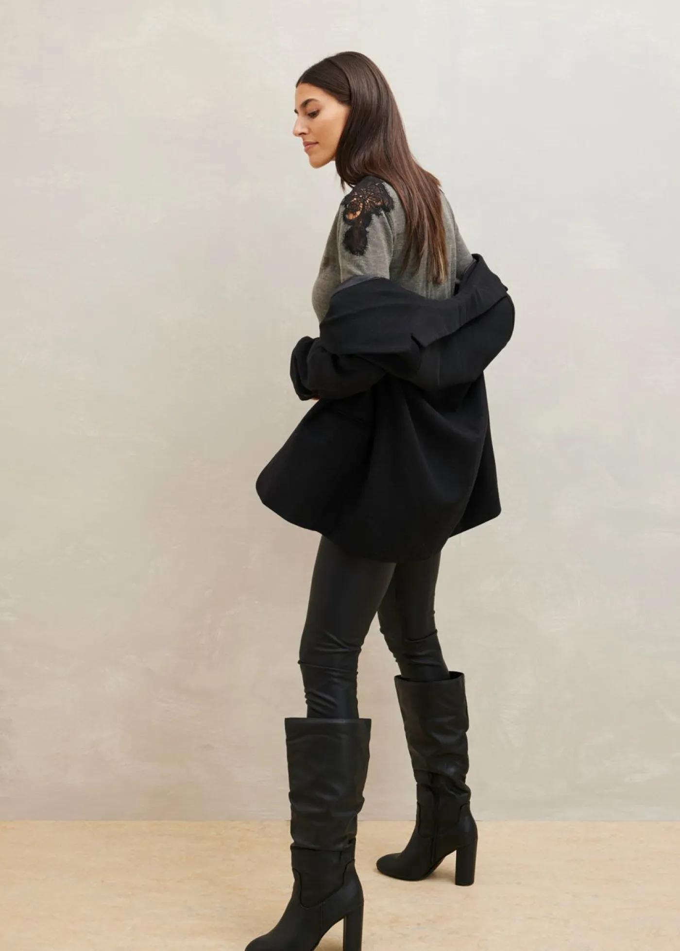 | Material | Material externo: 100% acrílico; Encaje: 95% poliéster, 5% elastano |