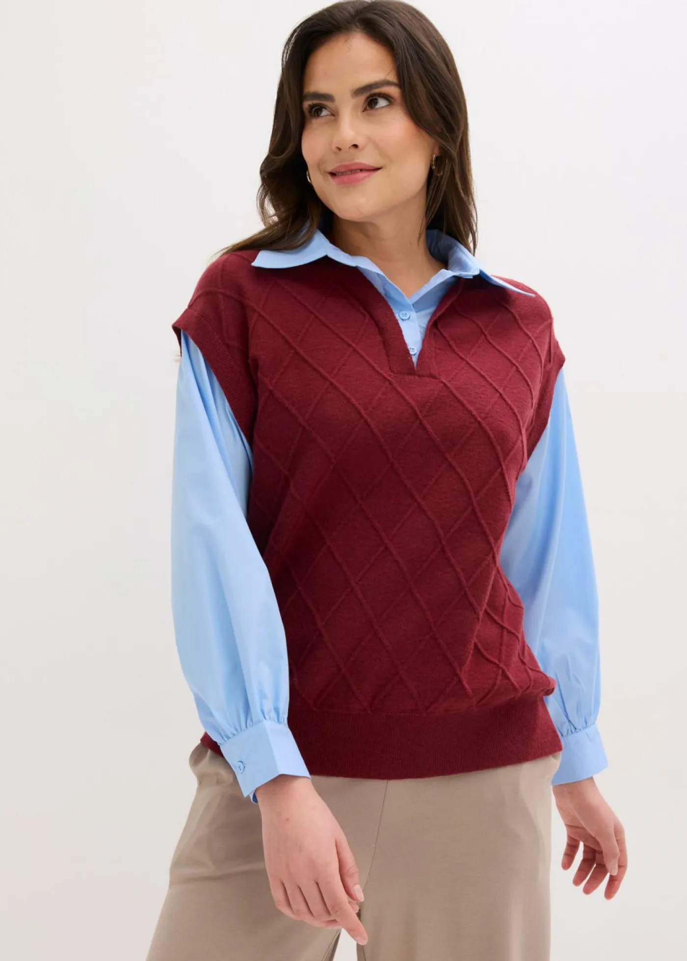 Jersey sin mangas con inserto de blusa y contenido de algodón