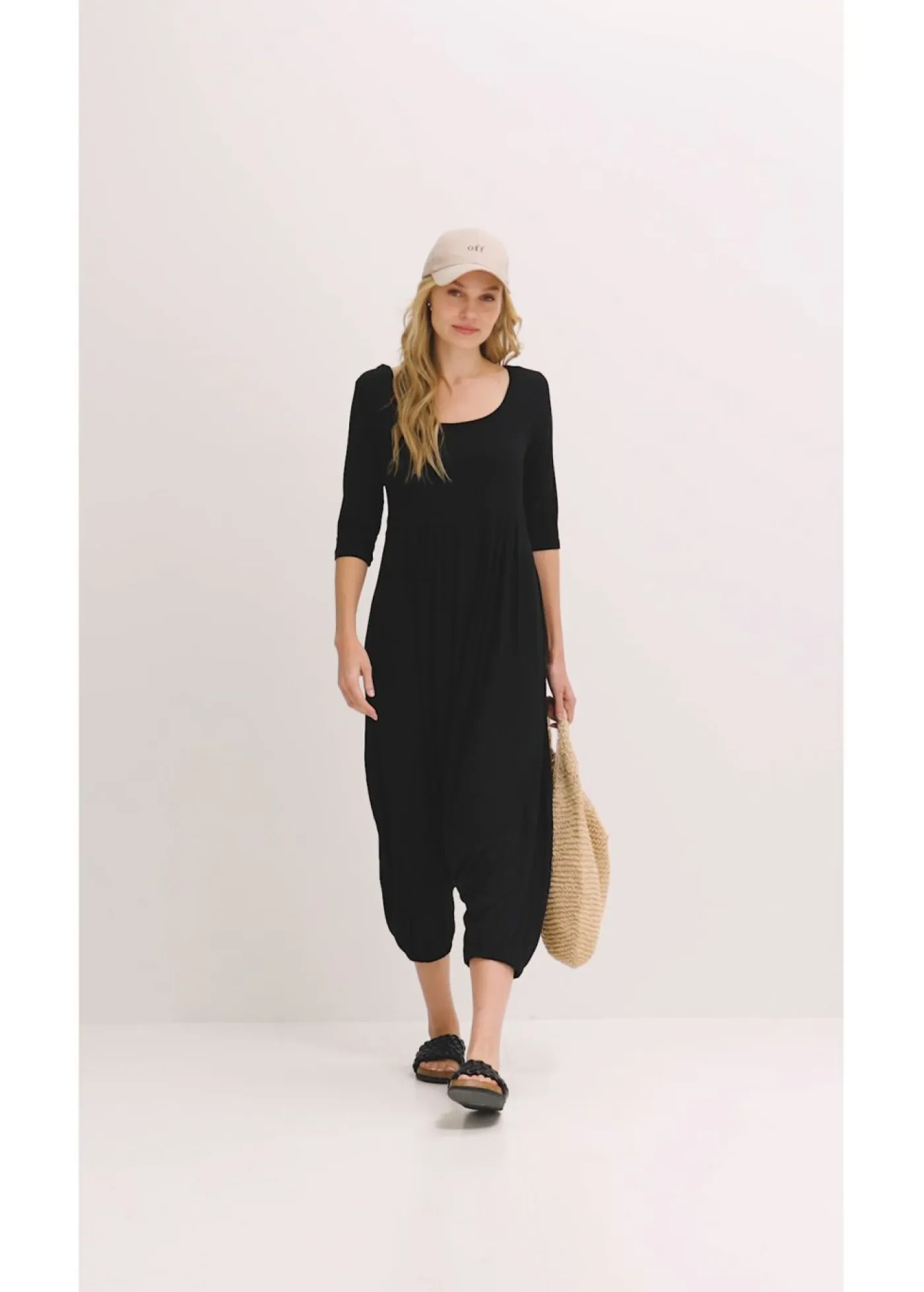 Moderno mono con pantalón bombacho y cuello redondo confeccionado en viscosa sostenible. Largo de aprox. 86 cm en talla 40/42. Se puede lavar a máquina.