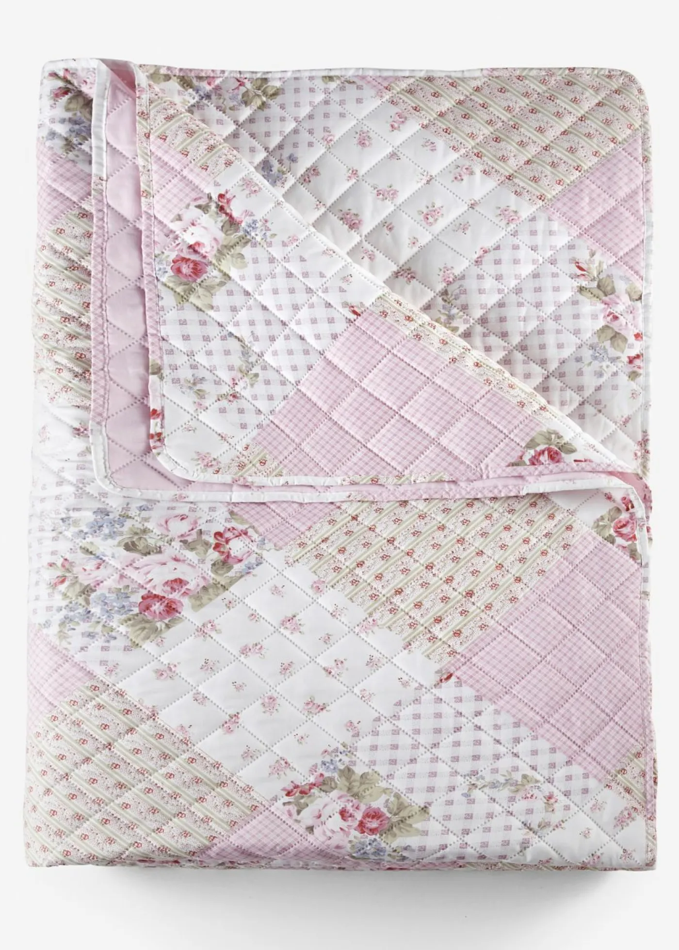 Colcha con un romántico diseño de rosas. La romántica colcha con diseño patchwork aporta calidez. La parte trasera es lisa en color rosa. Disponible en muchos tamaños, hay una variante adecuada para cualquier dormitorio. Existen fundas de cojín a juego (2 unidades). Disponibles en 6 tamaños, los tamaños 7-8 son las fundas de cojín a juego (2 unidades). Lamentablemente no podemos mostrar el precio del envase de fundas para cojines (2 unidades), sentimos las molestias.