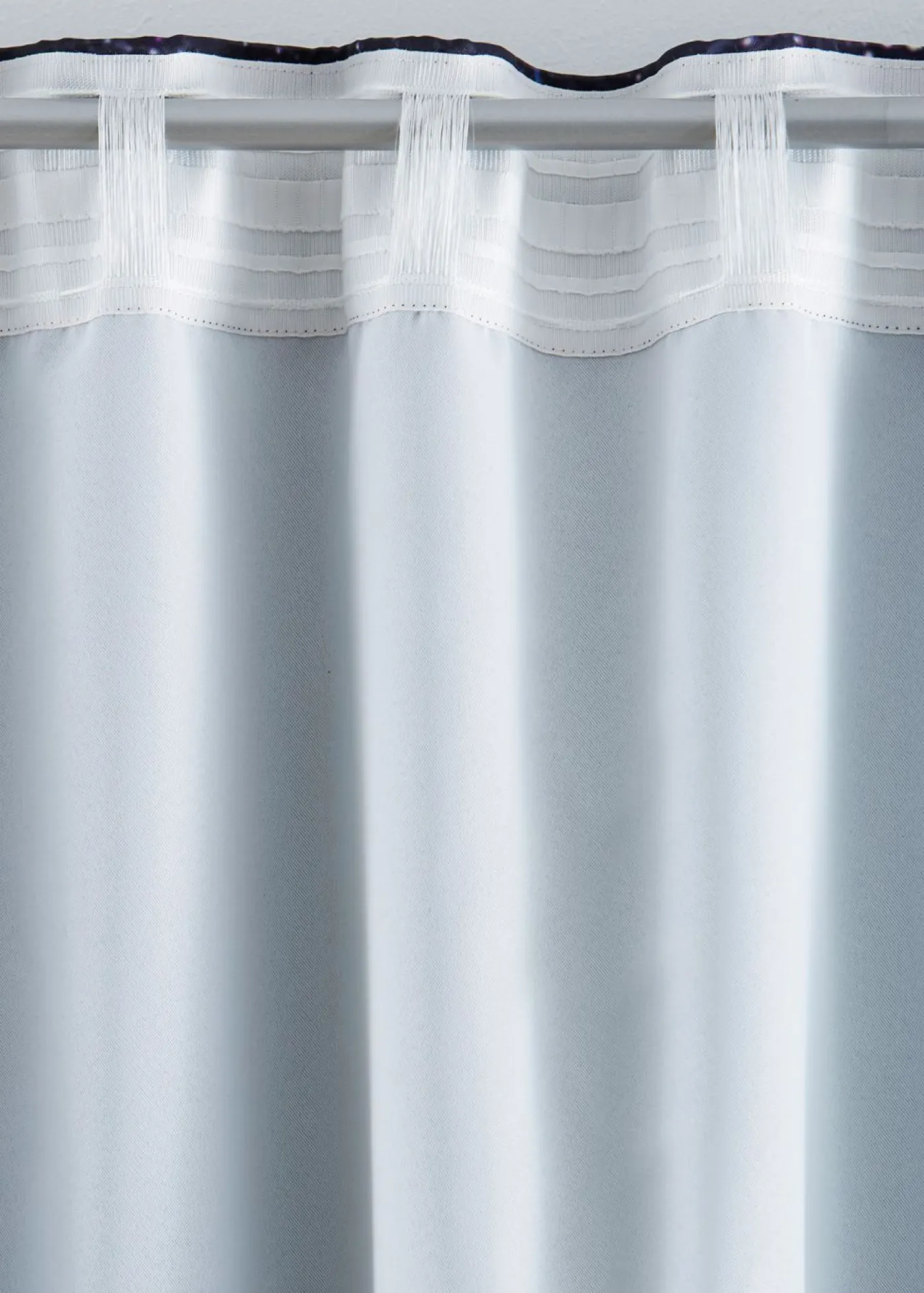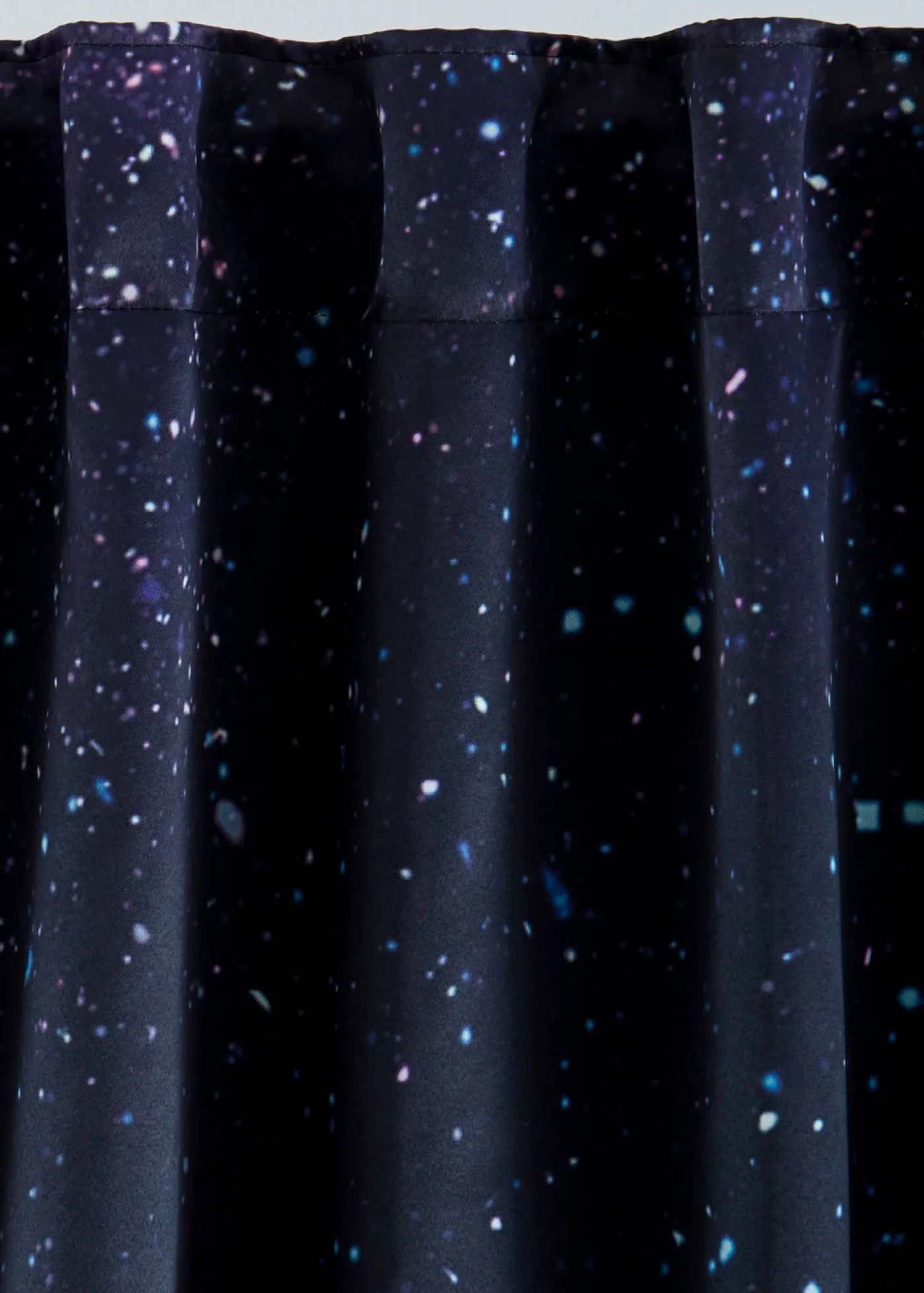Cortina con cielo estrellado. Moderna cortina opaca con un precioso estampado de cielo nocturno en la parte delantera. El reverso es de color claro y sin impresión. Esta cortina combina diseño y funcionalidad, ya que su tejido pesado permite ahorrar energía. Se evitan las corrientes de aire frío en invierno. Y, en verano, el calor. Además, el tejido también está fabricado con poliéster reciclado.