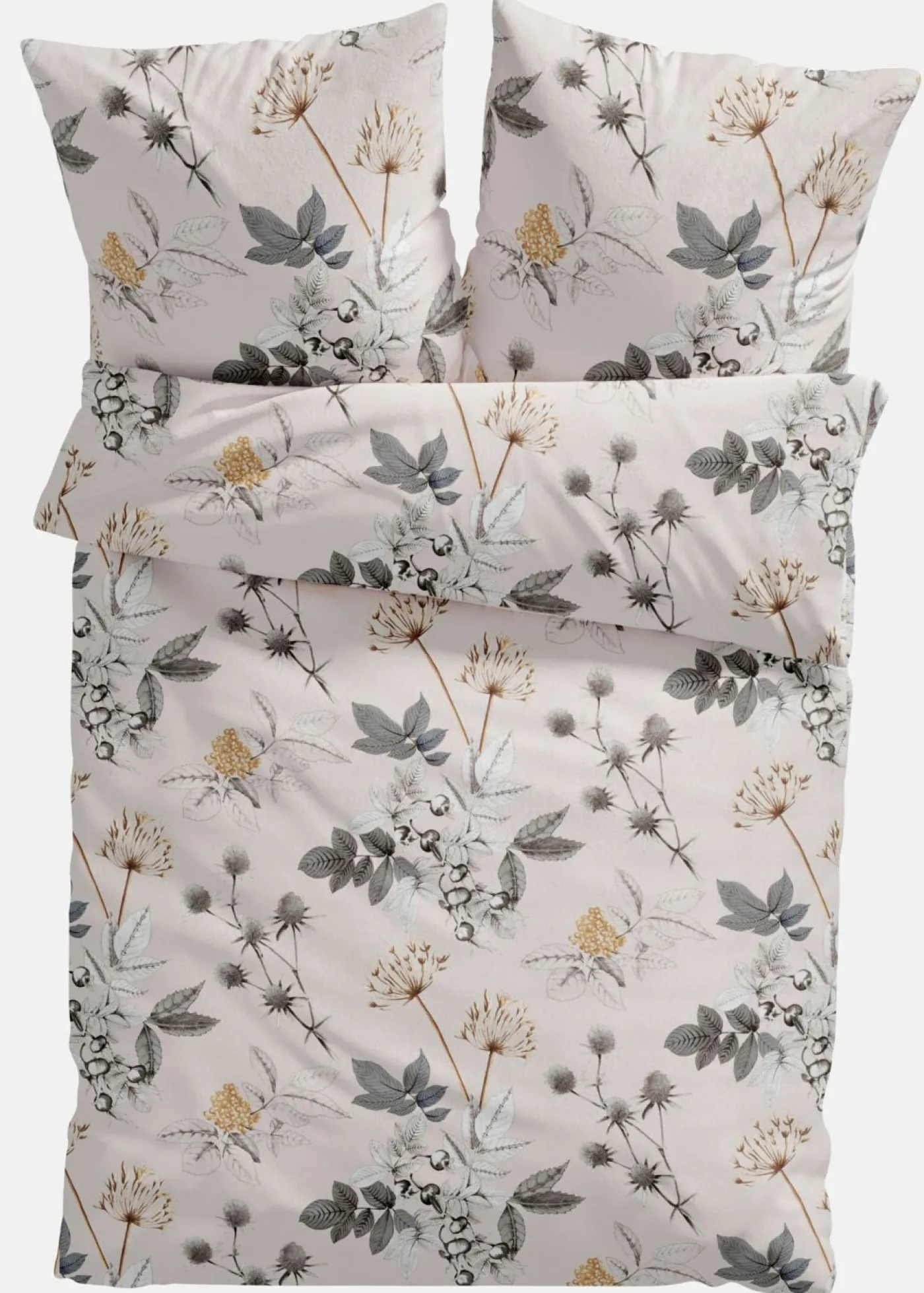 Ropa de cama con flores y hierbas.