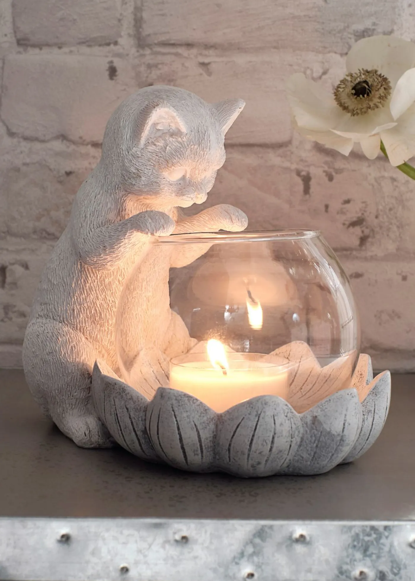 Lo más destacado para todos los amantes de los gatos: portavelas con gran inserto de vidrio. Portavelas con inserto de vidrio grande para velas de té o velas pequeñas. Un artículo imprescindible para todos los amantes de los gatos.