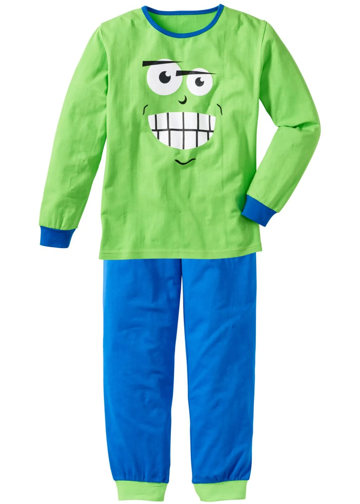 Pijama agradable al tacto con un divertido motivo estampado. El rostro divertido en este pijama pone inmediatamente a los niños de buen humor. El modelo de la colección bpc consta de una camiseta de manga larga y un pantalón largo. Ambas prendas presentan un corte informal para ofrecer una gran libertad de movimientos durante la noche. La cintura elástica añade un extra de comodidad a la prenda inferior. Los detalles de color en contraste, como los puños en los extremos de las mangas y las perneras y los ribetes en el cuello redondo, aportan elegancia al pijama.