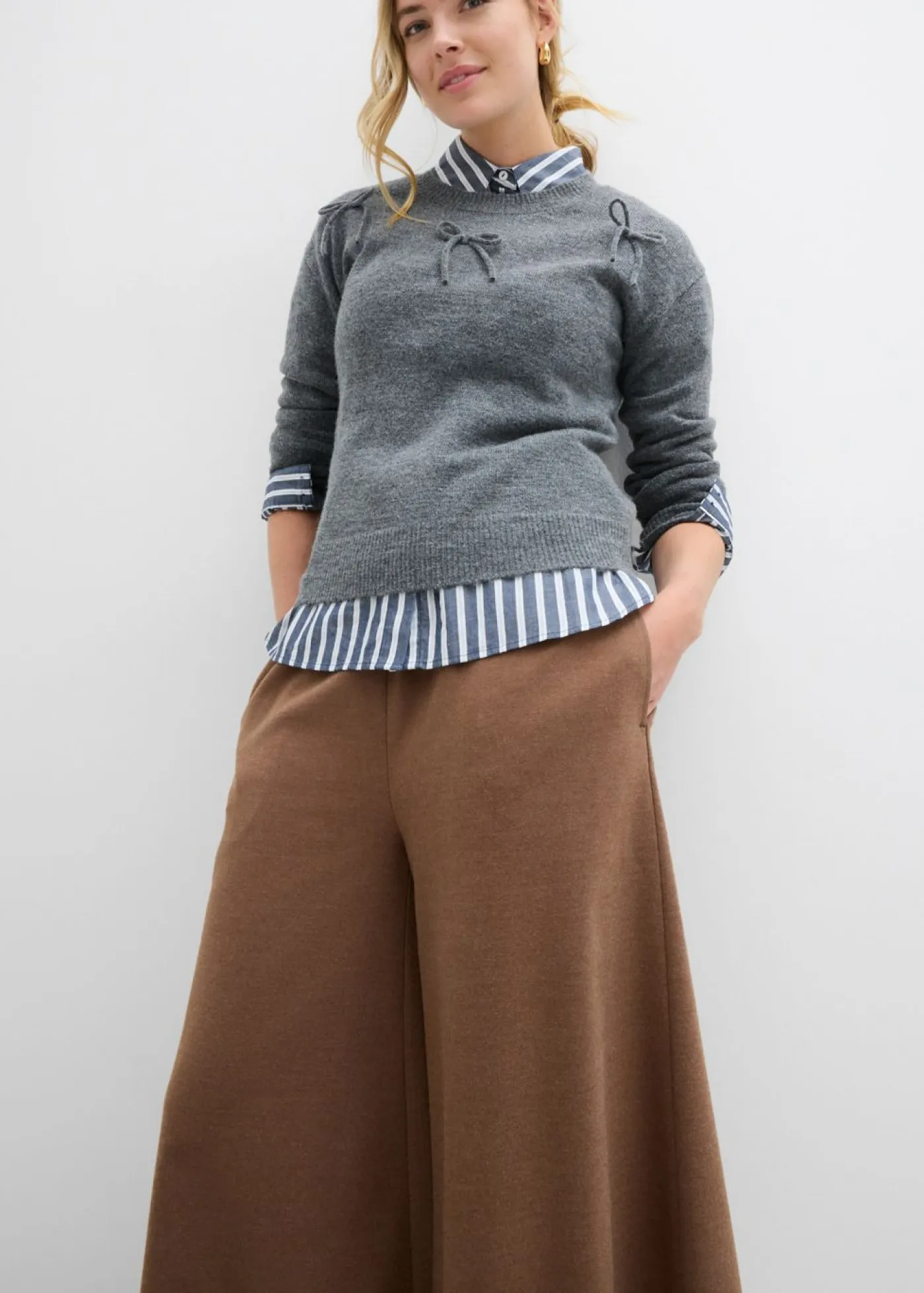 Culotte capri con cinturilla alta y elástica. Corte ancho. Largo interior de la pierna de aprox. 64,5 cm en talla 42. Se puede lavar a máquina.