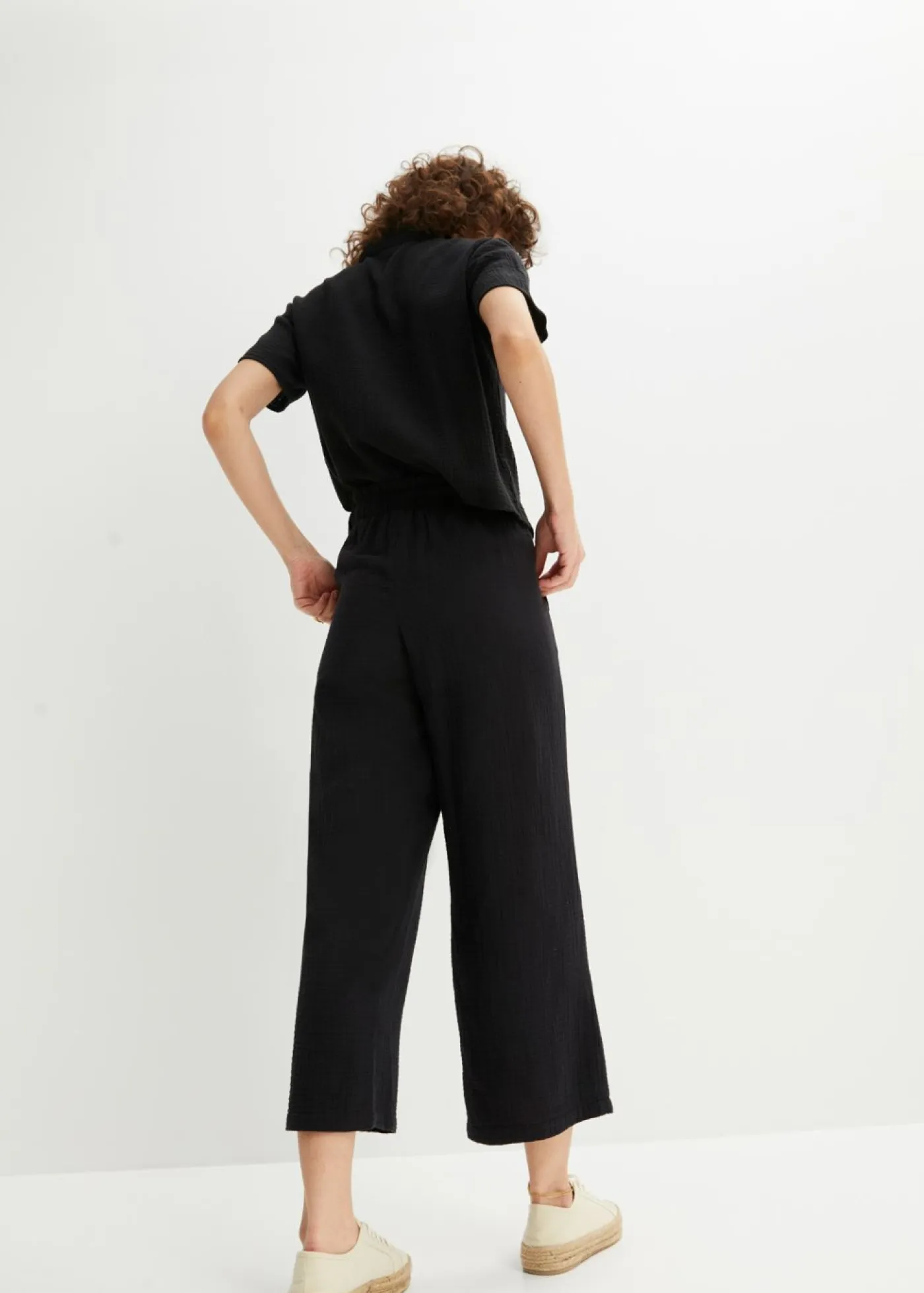 Elegante culotte de muselina con cinturilla elástica. Largo interior de la pierna de aprox. 64,5 cm en talla 42. Se puede lavar a máquina.