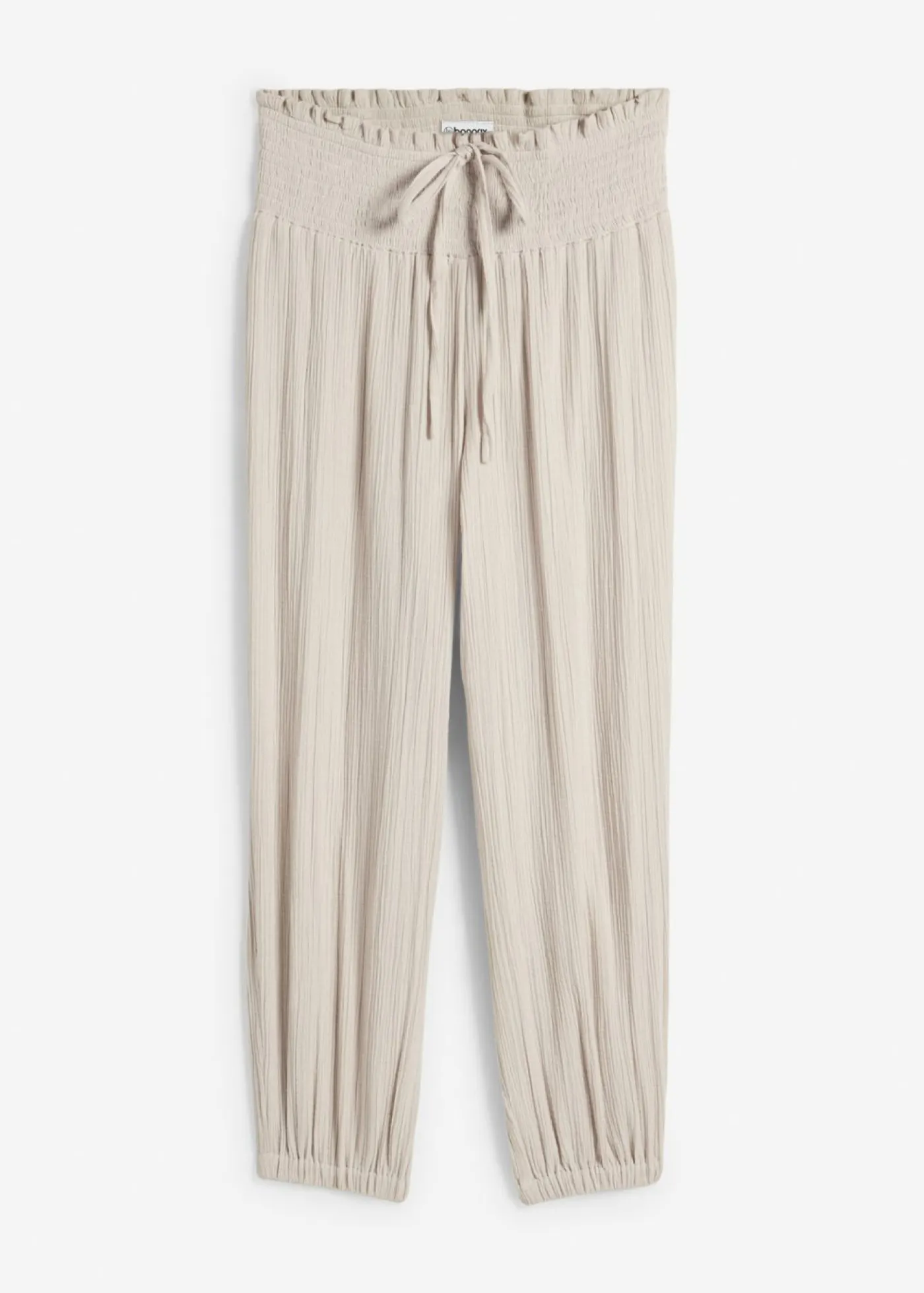 Cómodo pantalón de muselina con cinturilla ancha. Largo interior de la pierna de aprox. 66 cm en talla 42. Se puede lavar a máquina.