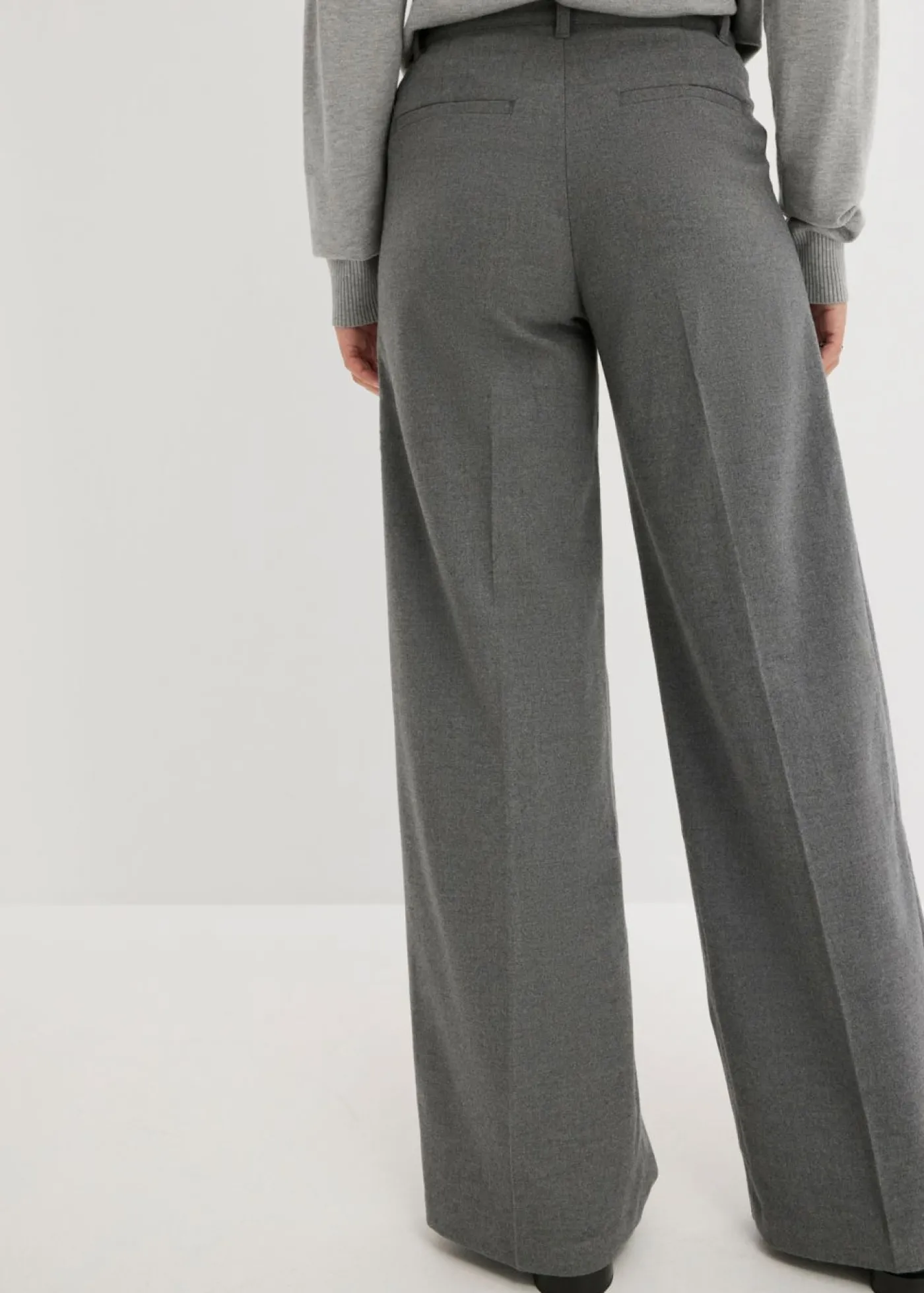 Pantalón informal con pliegues y perneras anchas.