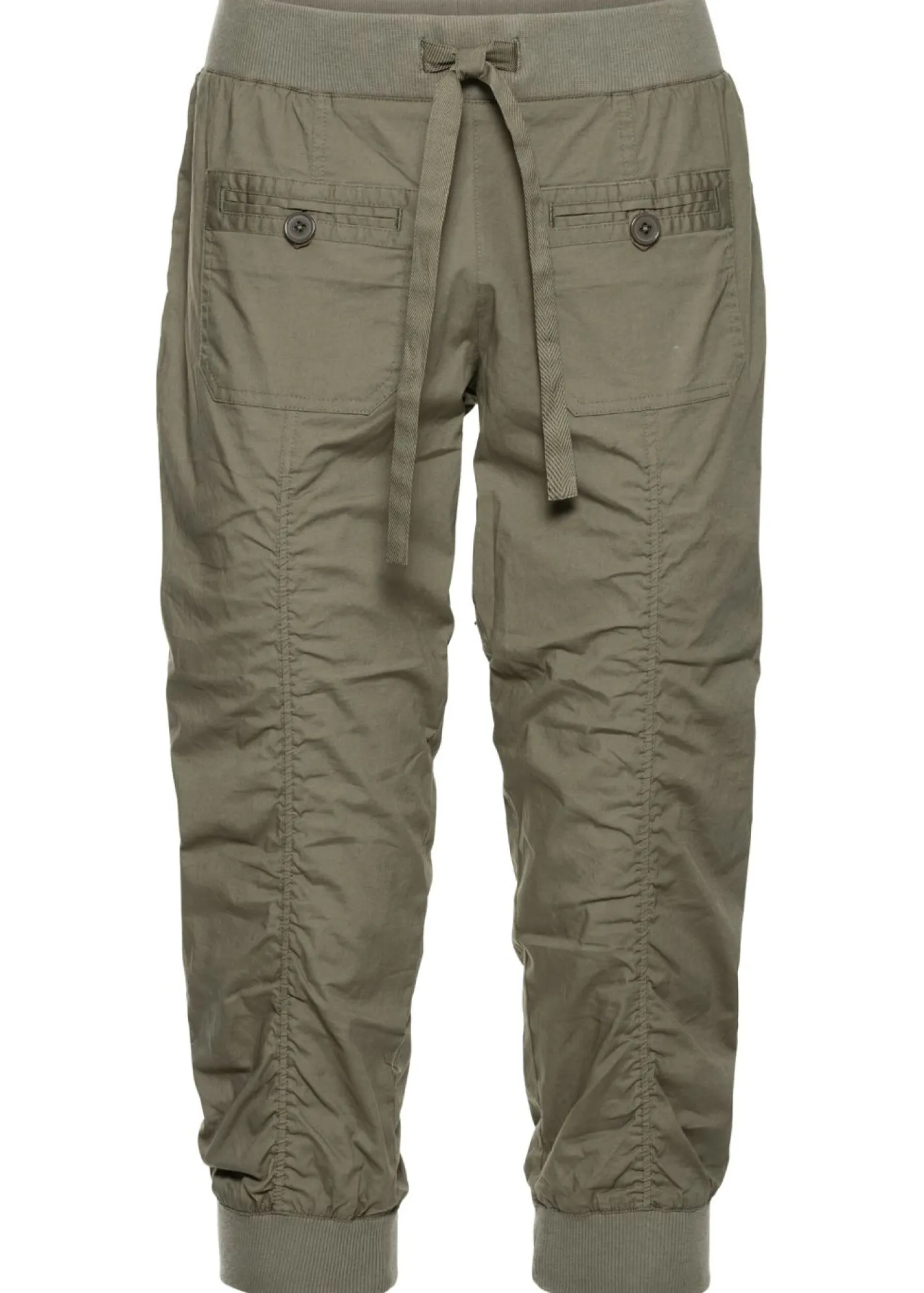 Pantalón capri deportivo con cintura tipo chándal. Con cintura totalmente elástica y pernera corta de 3/4. Largo interior de la pierna de aprox. 55 cm en talla 38.