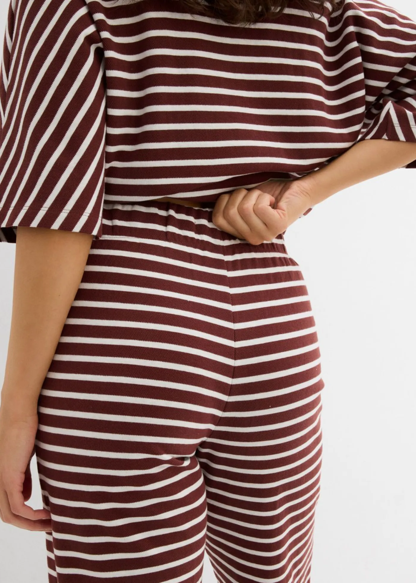 Pantalón de algodón con cintura alta. Modelo holgado con cinturilla elástica y largo 7/8. Largo interior de la pierna de aprox. 64 cm en talla 40/42. Se puede lavar a máquina.